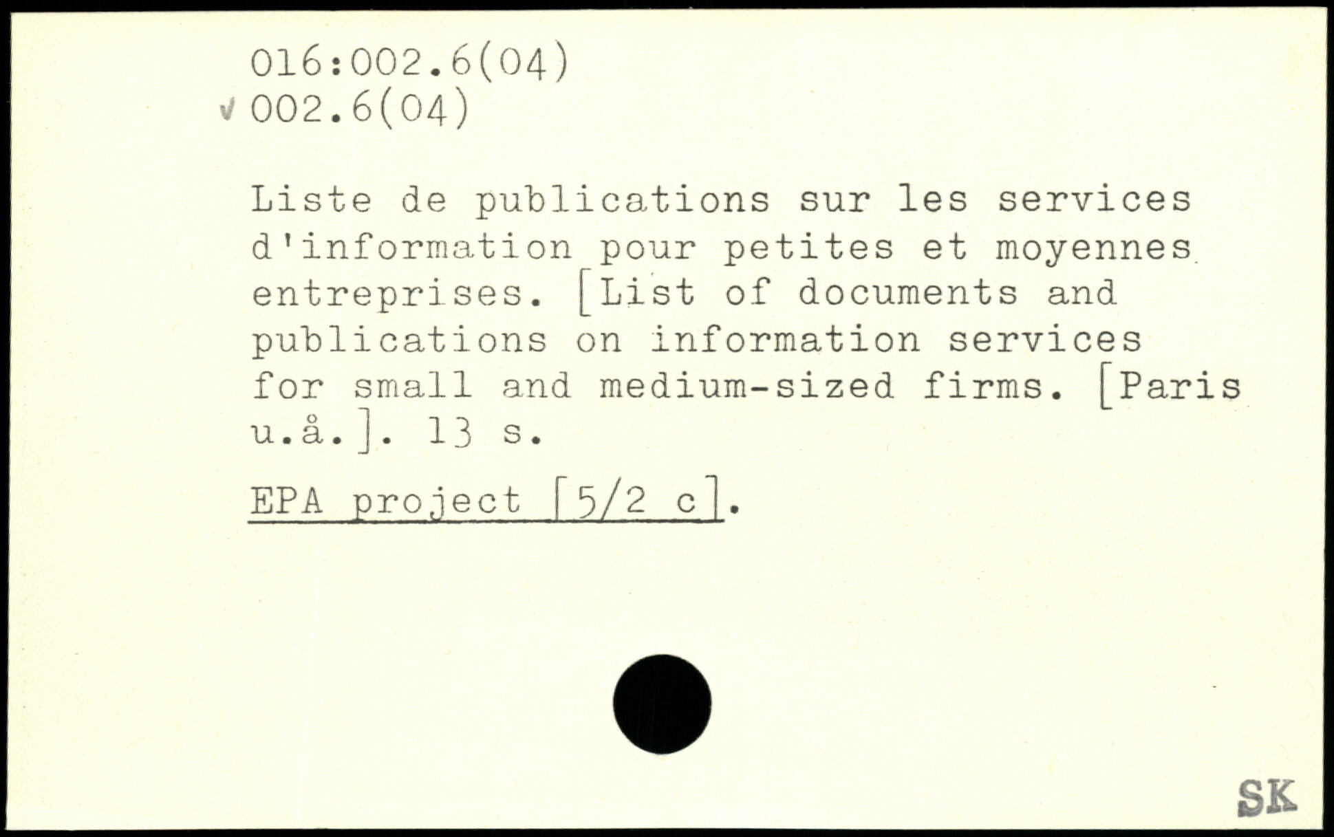Liste de publications sur les services d'information pour petites et moyennes entreprises. [List of documents and publications on information services for small and medium-sized firms. [Paris u.â.].