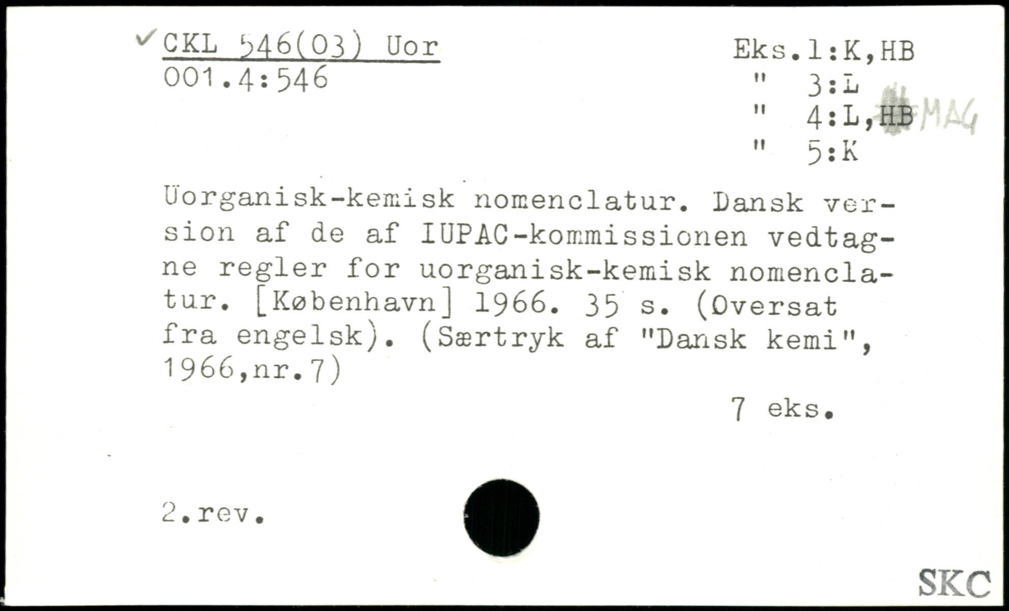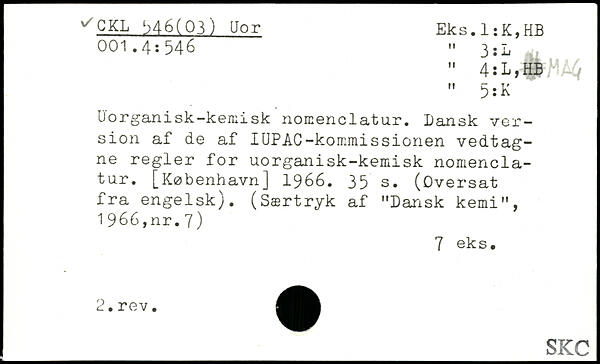 Uorganisk-kemisk nomenclatur. Dansk version af de af IUPAC-kommissionen vedtagne regler for uorganisk-kemisk nomencla-tnr.