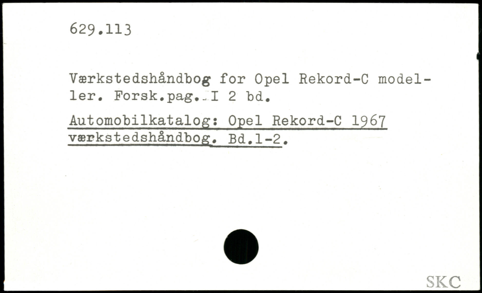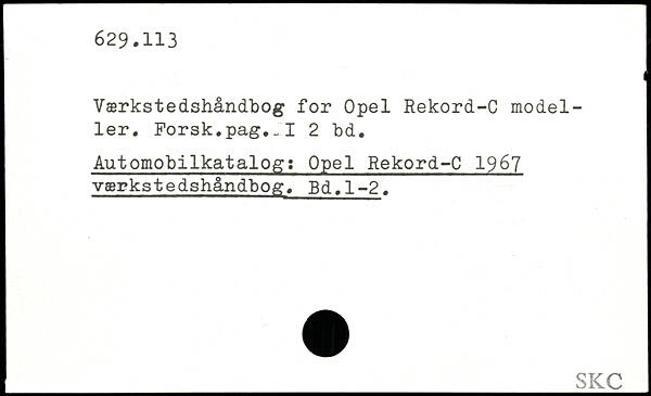 Værkstedshåndbog for Opel Rekord-C modeller. Forsk.pag.^I 2 bd. Automobilkatalog: Opel Rekord-C 1967 værkstedshåndbog.