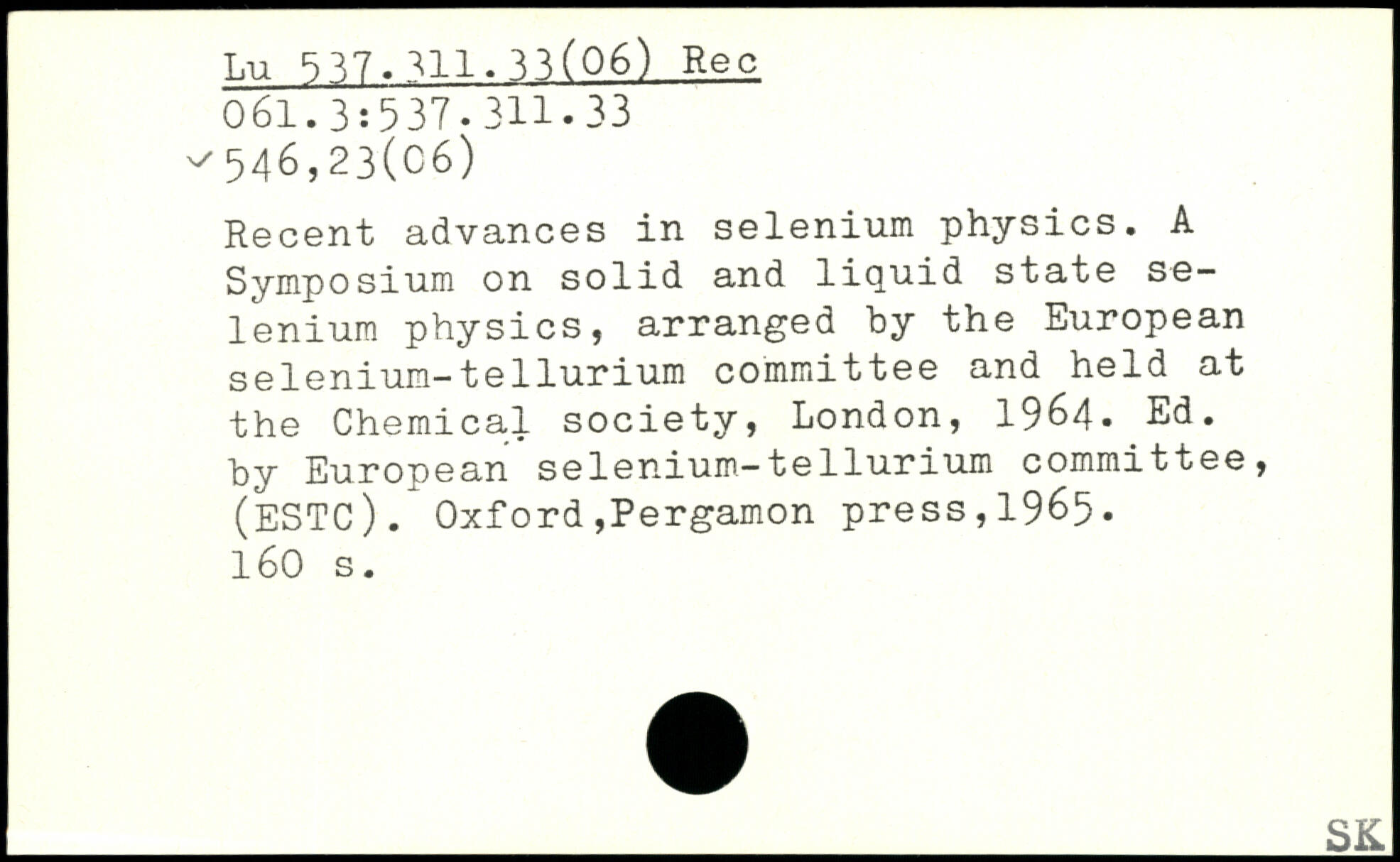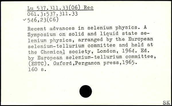 Recent advances in selenium physics. A Symposium on solid and liquid state selenium physics, arranged by the European selenium-tellurium committee and held at the
