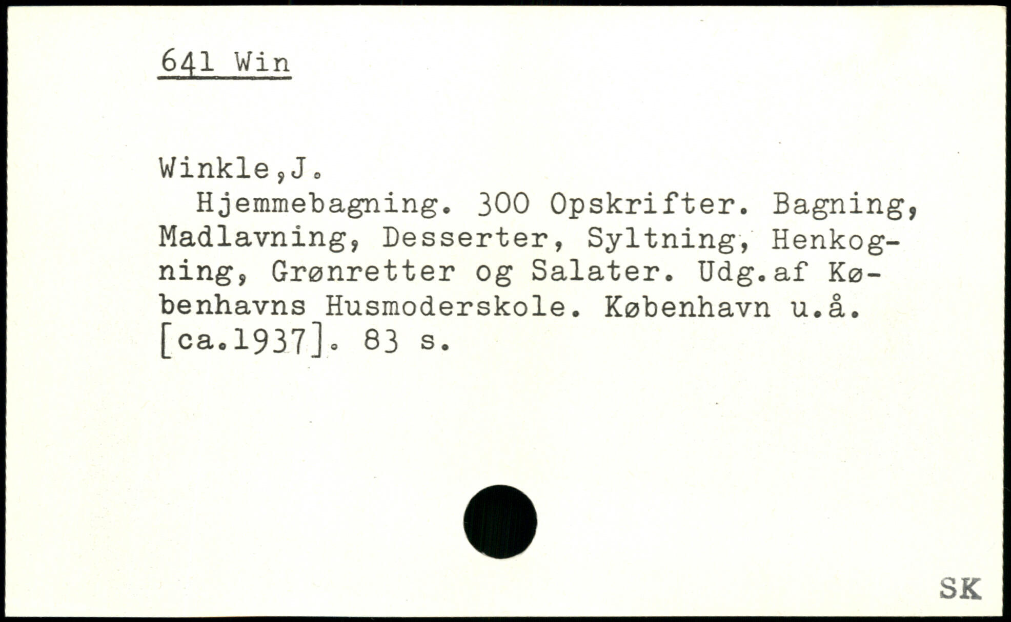 Hjemmebagning. 300 Opskrifter. Bagning, Madlavning, Desserter, Syltning, Henkogning, Grønretter og Salater. Udg.af Københavns Husmoderskole. København u.å.