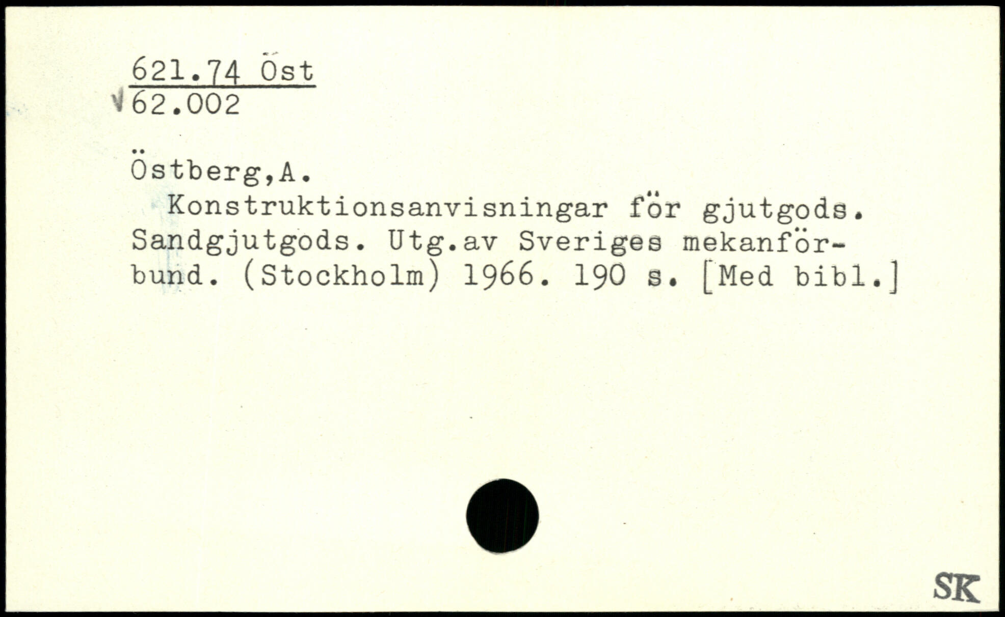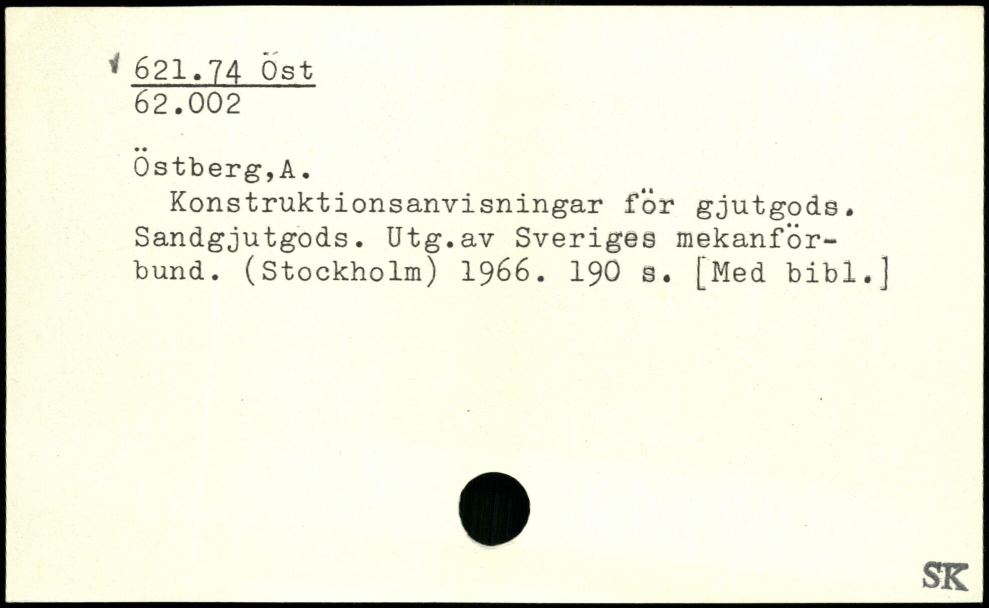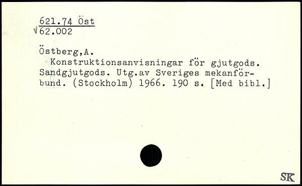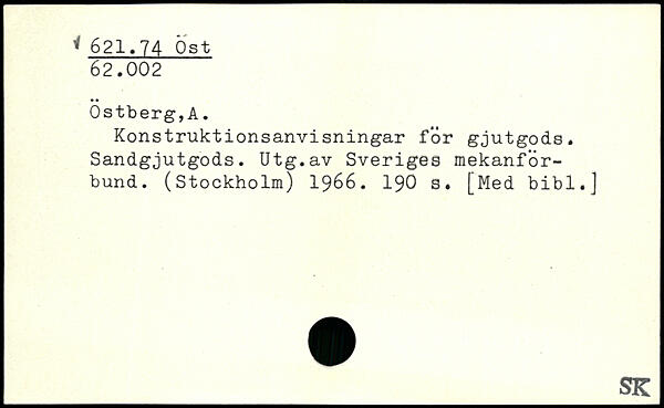 Östberg,A. Konstruktionsanvisningar för gjutgods. Sandgjutgods. Utg.av Sveriges mekanfor-bund. (Stockholm) 1966.