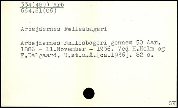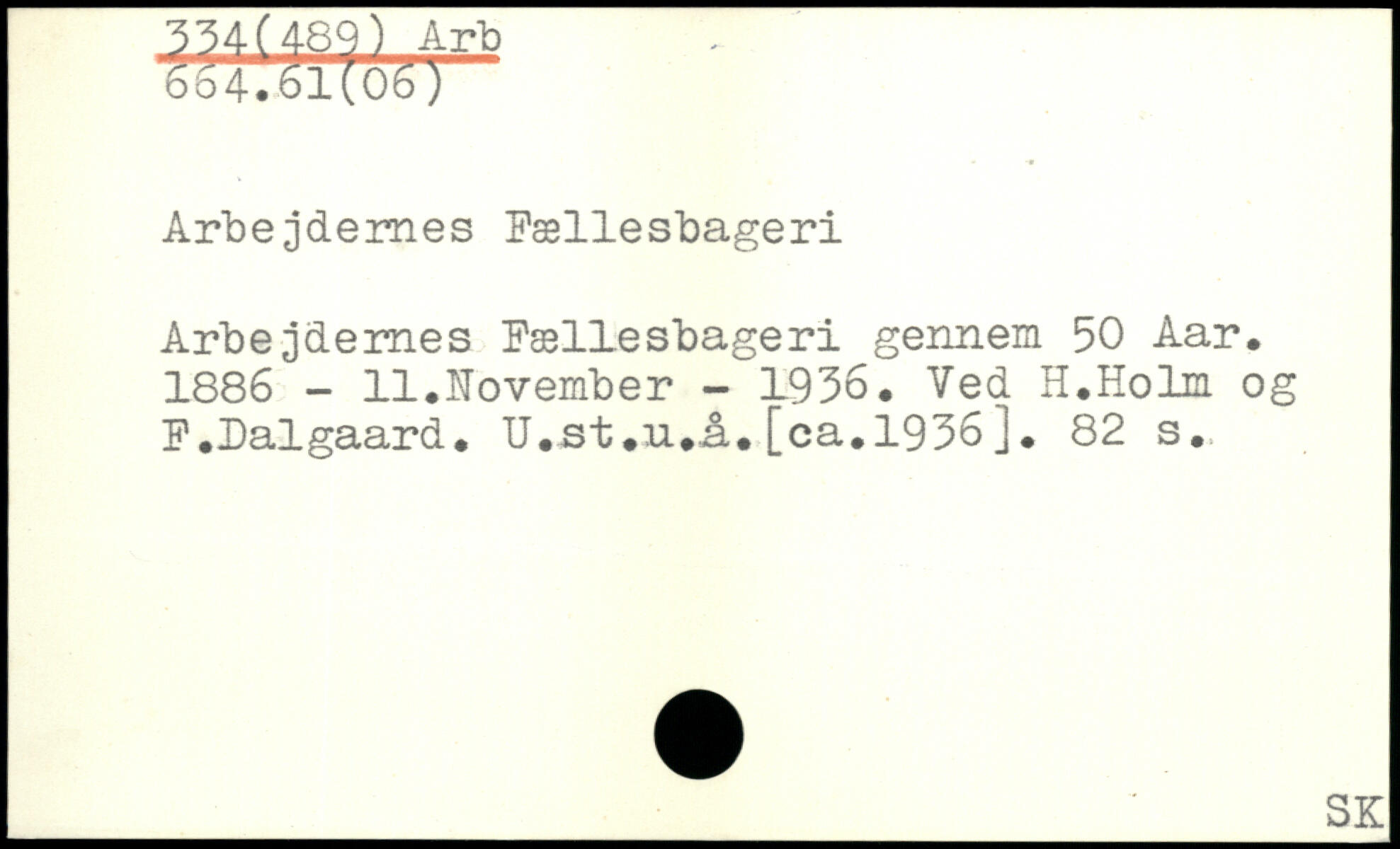 Arbejdernes Fællesbageri Arbejdernes Fællesbageri gennem 50 Aar. 1886 - 11.November - 1936. Yed H.Holm og F.lalgaard. U.st.u.å.[ca.1936].