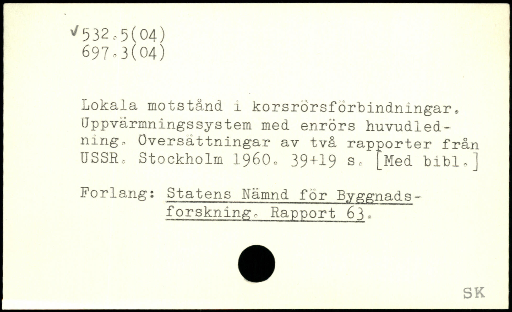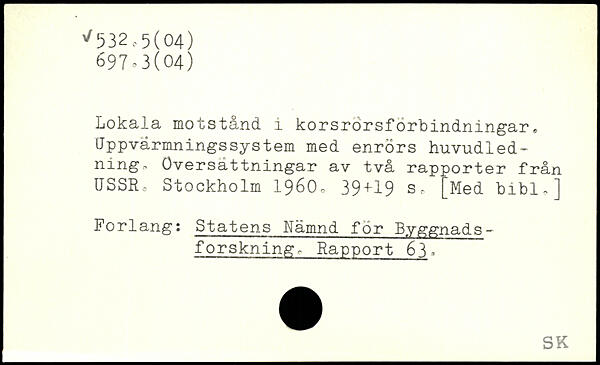 Lokala motstånd, i korsrörsforbindningar. Uppvärmningssystem med enrörs huvudledning, Översättningar av två rapporter från USSR