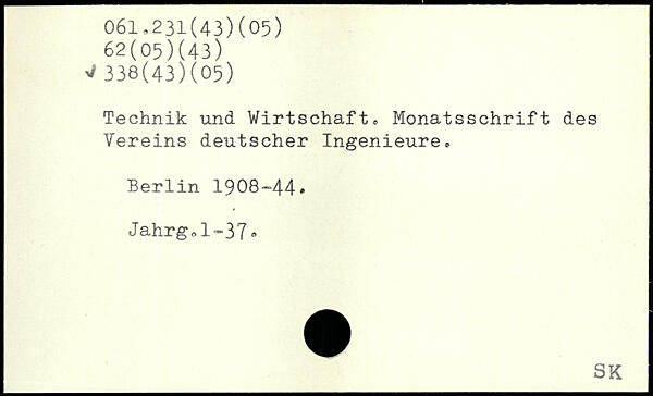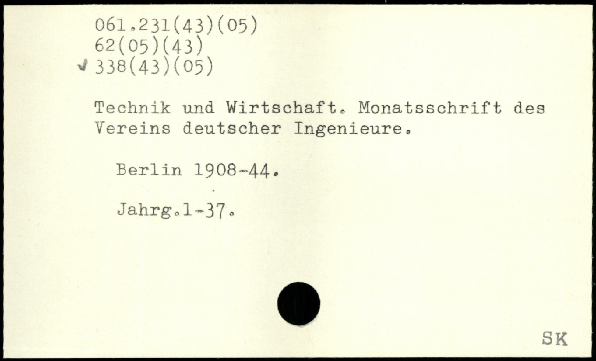 Technik und Wirtschaft, Monatsschrift des Vereins deutscher Ingenieure.