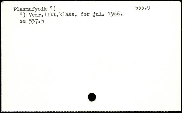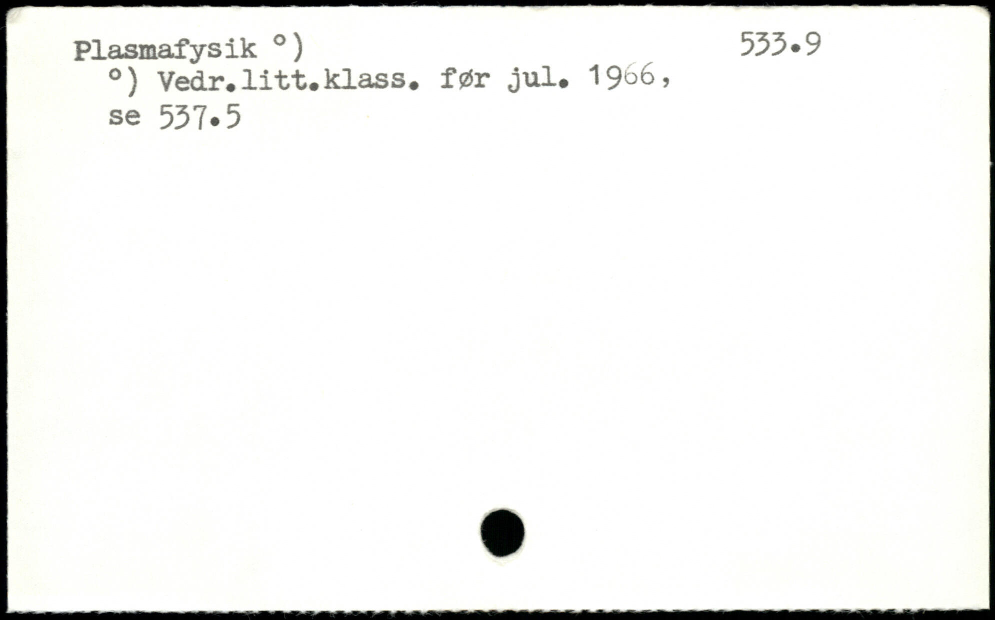 W .1. I- - ,II ■ ......I - H. Il I ......... . Plasmafysik .) 533.9 .) Vedr.litt,klass, før jul. 1966, se 537.5