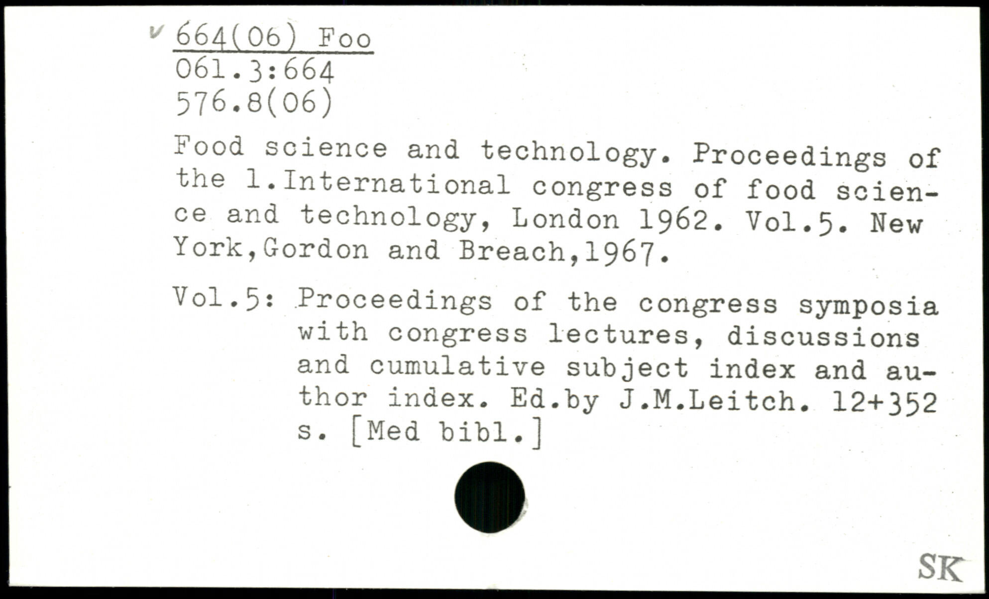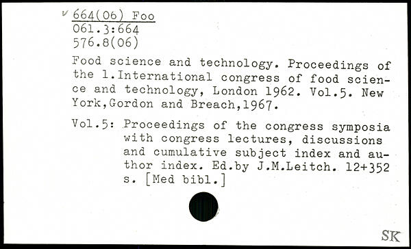 Food science and technology. Proceedings of the 1.International congress of food science and technology