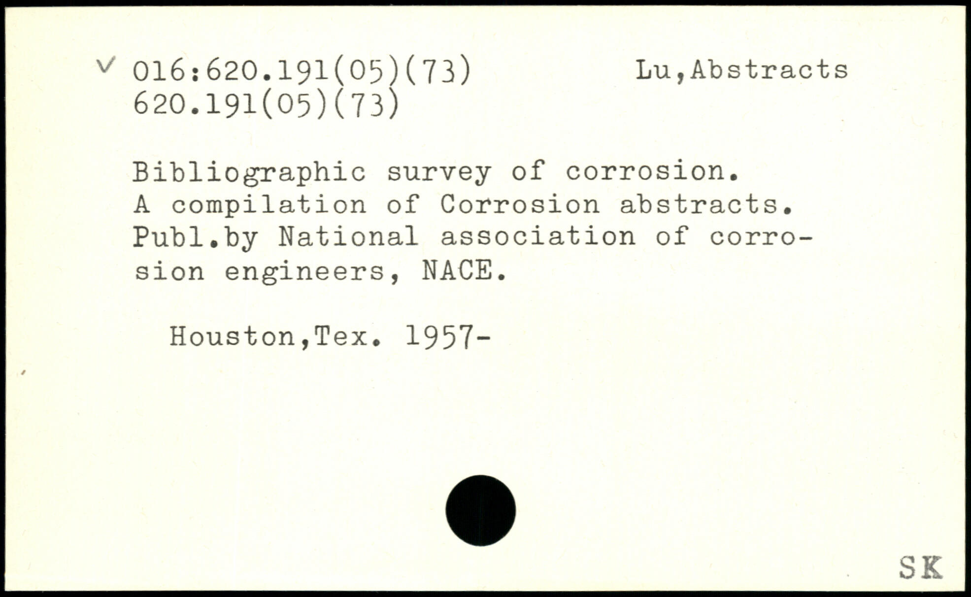 Bibliographic survey of corrosion. A compilation of Corrosion abstracts.
