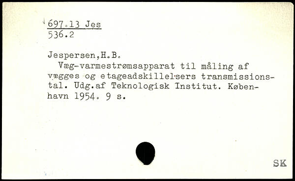 Væg-varmestrømsapparat til måling af vægges og e tageadskillel-sers transmissionstal. Udg.af Teknologisk Institut.