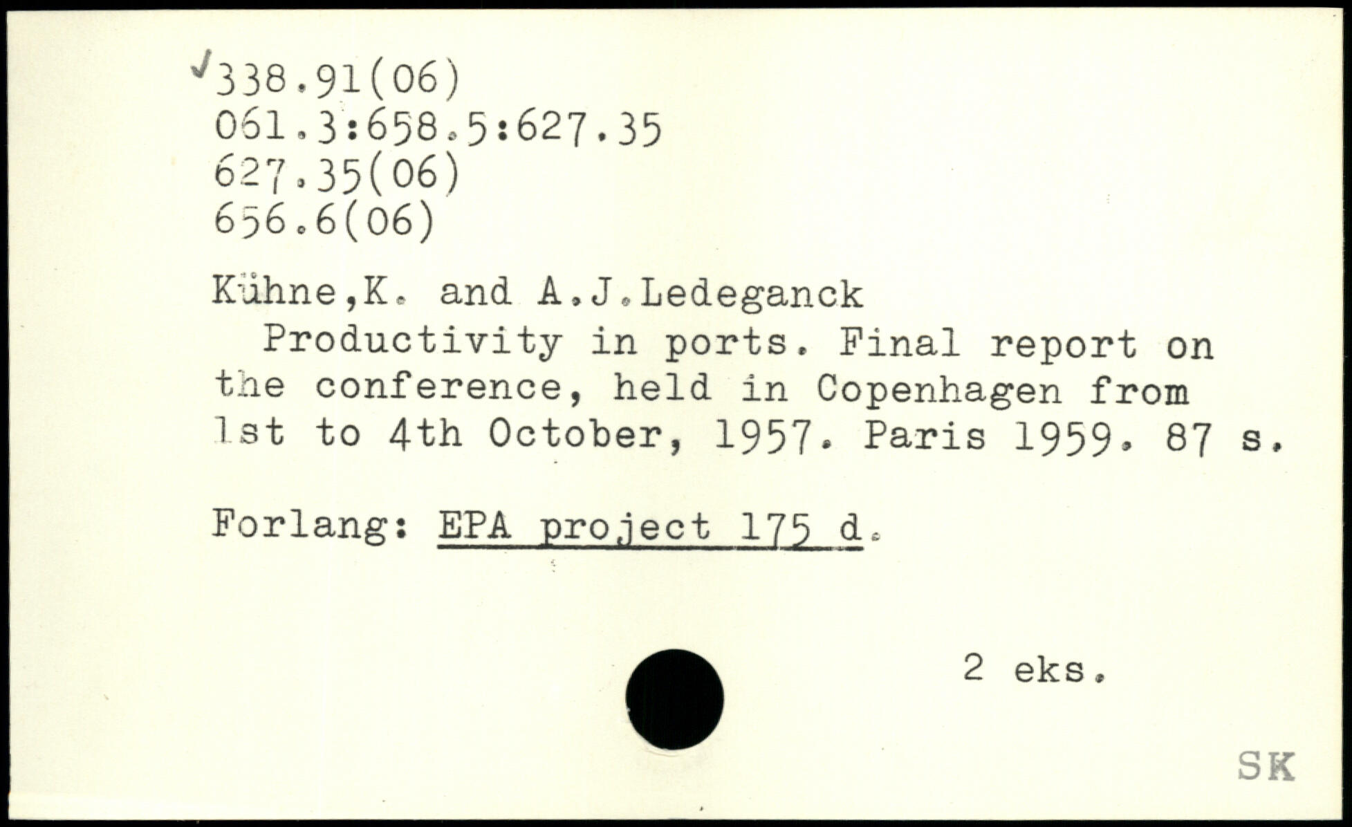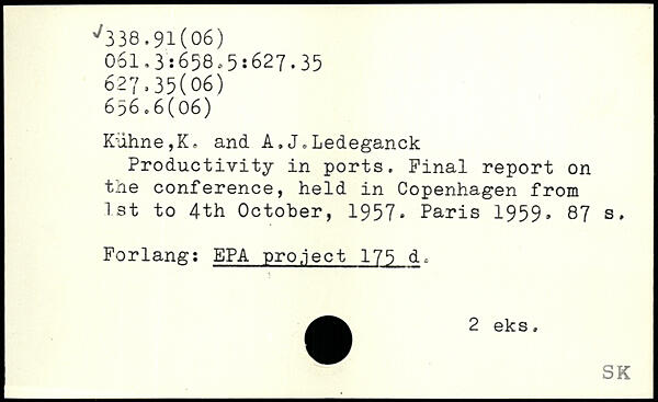 Productivity in ports. Pinal report on the conference, held in Copenhagen from 1st to 4th October, 1957.