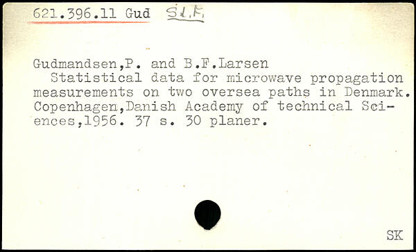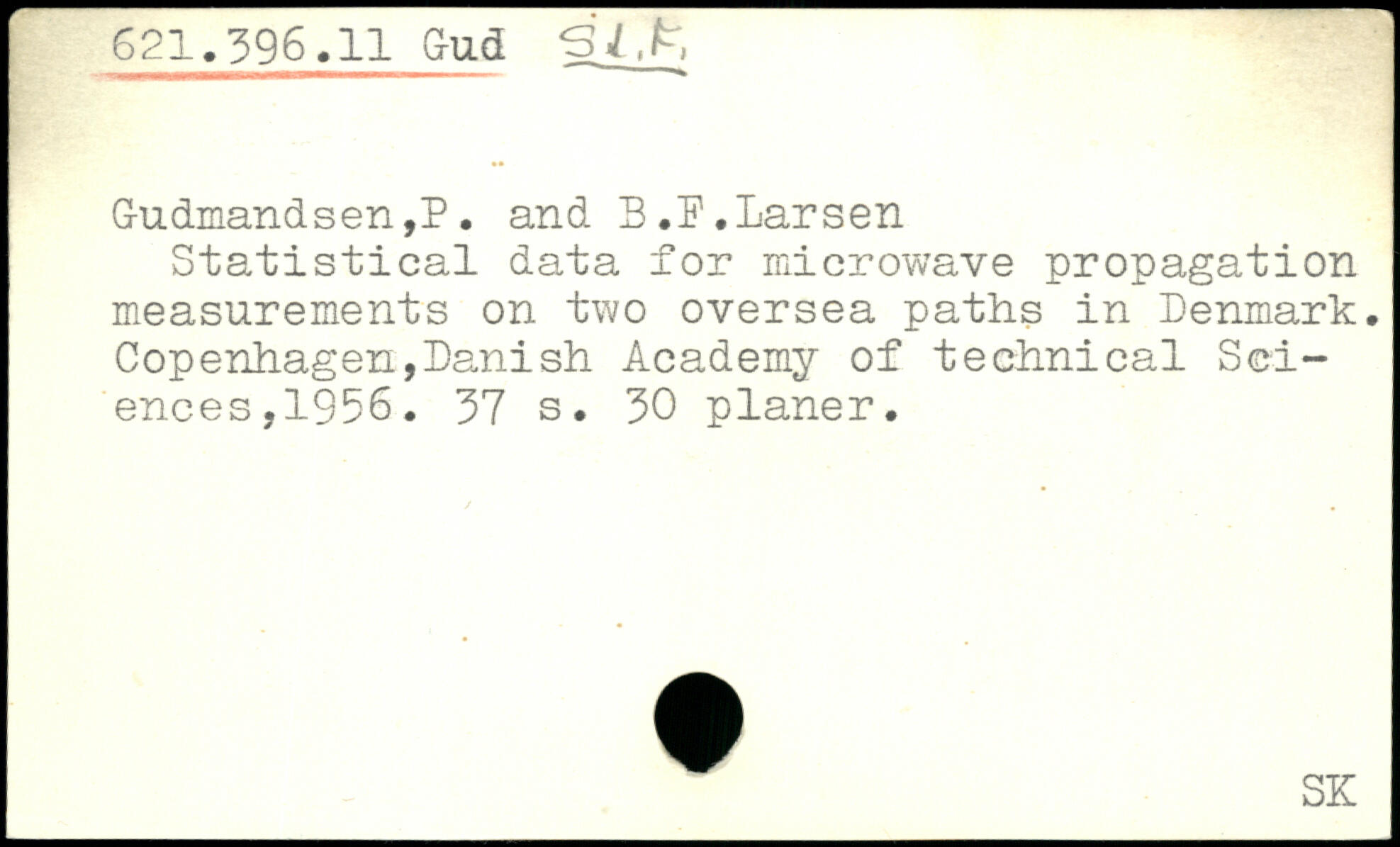 Statistical data for microwave propagation measurements on two oversea paths in Denmark. Copenhagen,Danish Academy of technical Sciences, 1956.