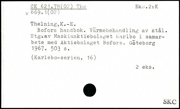 Bofors handbok. Värmebehandling av stål. Utgaav Maskinaktiebolaget karlbo i samarbete med Aktiebolaget Bofors. Goteborg 1967.