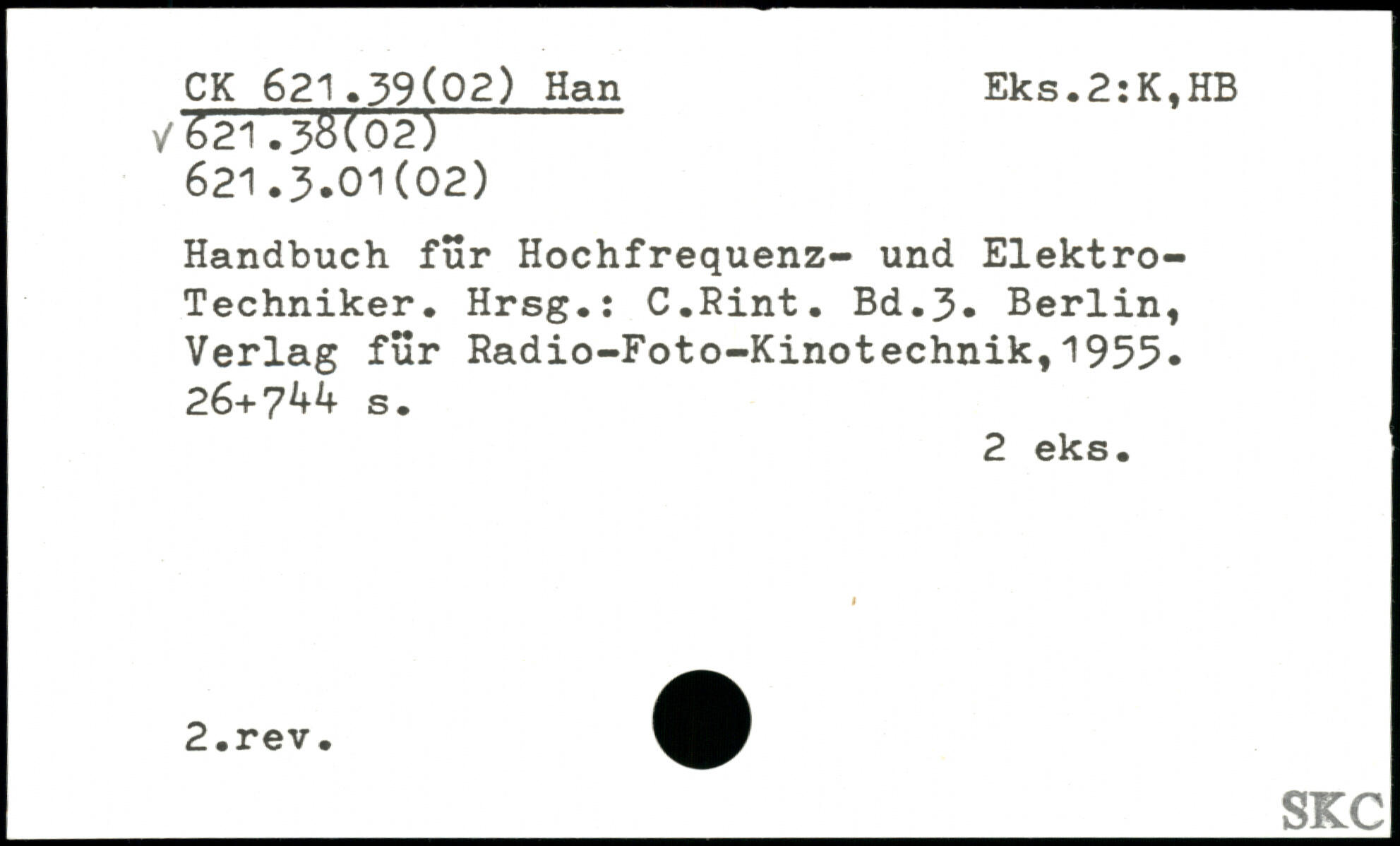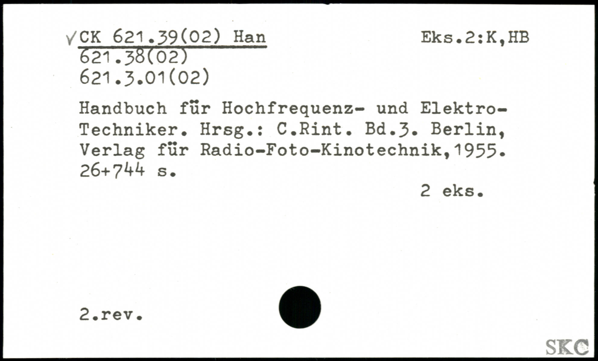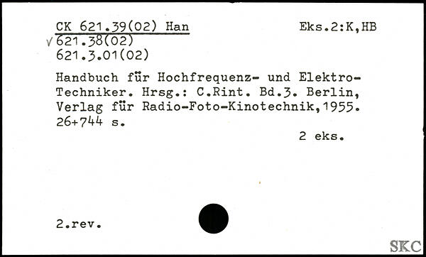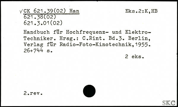Handbuch für Hochfrequenz- und Elektro-Techniker. Hrsg.: C.Rint.
