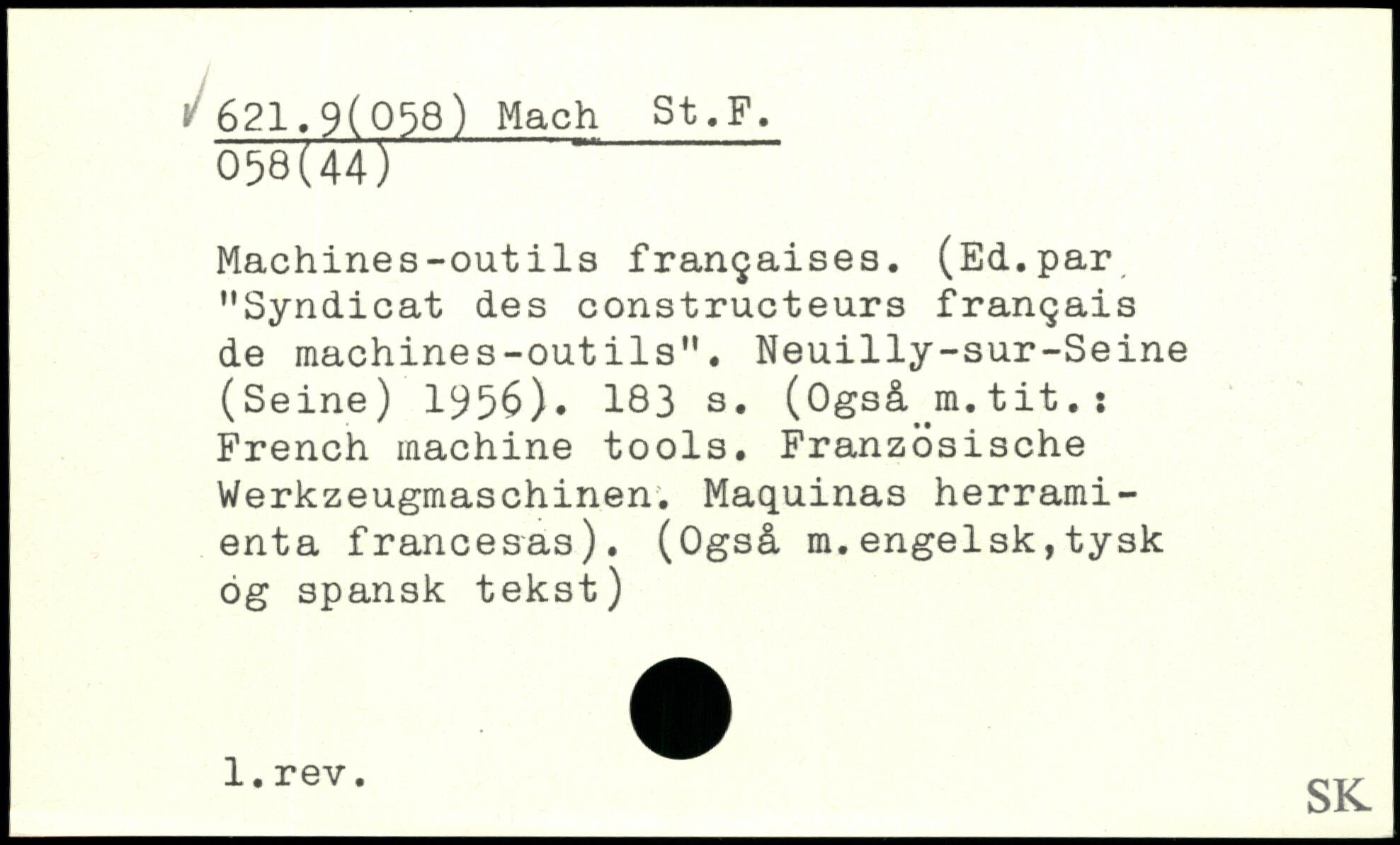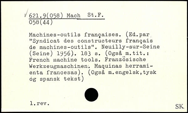 Machines-outils françaises. (Ed.par "Syndicat des constructeurs français de machines-outils". Neuilly-sur-Seine (Seine) 1956). 1Ö