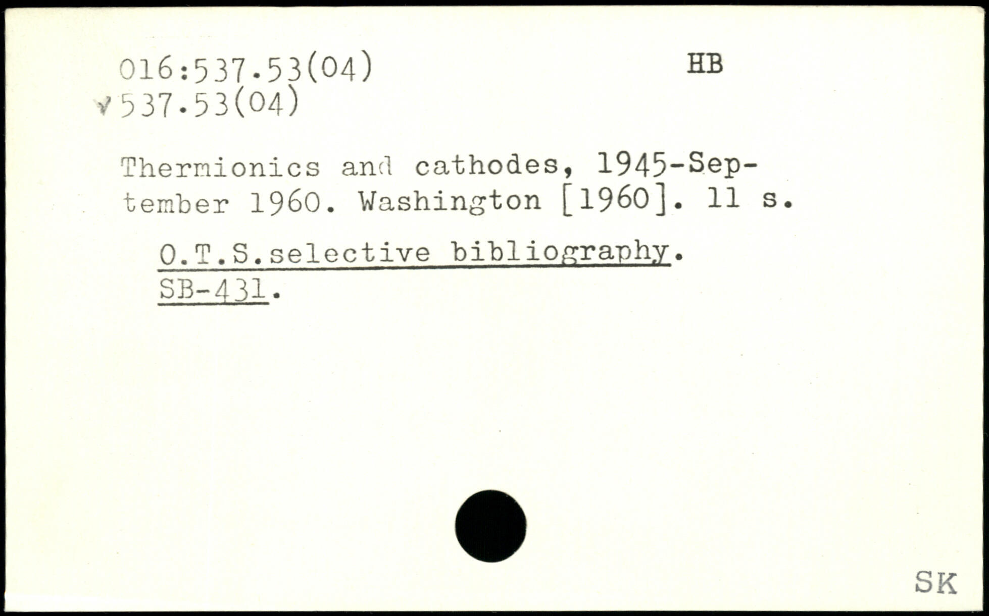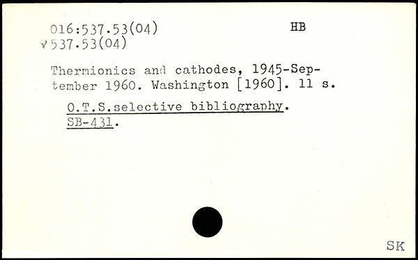 Thernionics and cathodes, 1945-Sep-tember 1960.
