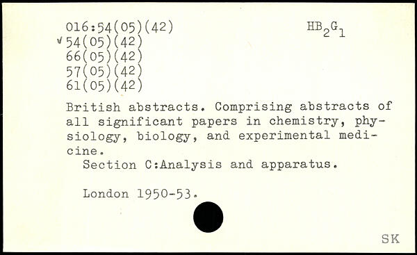 British abstracts. Comprising abstracts of all significant papers in chemistry, physiology, biology, and experimental medicine. Section C:Analysis and apparatus.