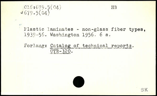 Plastic laminates - non-glass fiber types, 1939-56.
