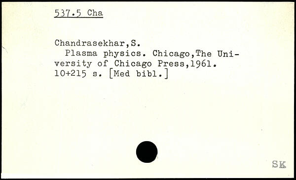 Plasma physics. Chicago,The University of Chicago Press,1961.