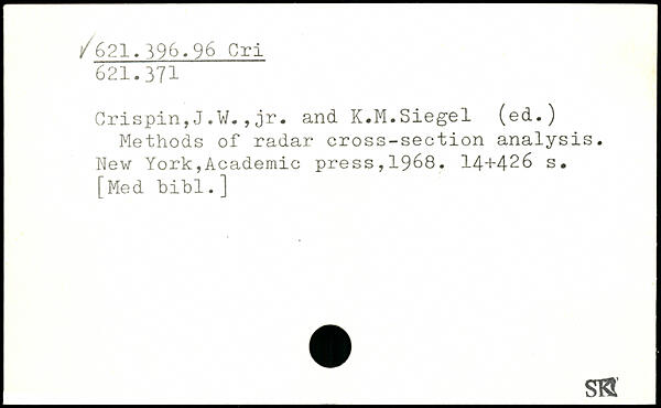 Ci’ispin, J. W. , jr. and K.M.Siegel (ed. ) Methods of radar cross-section analysis.