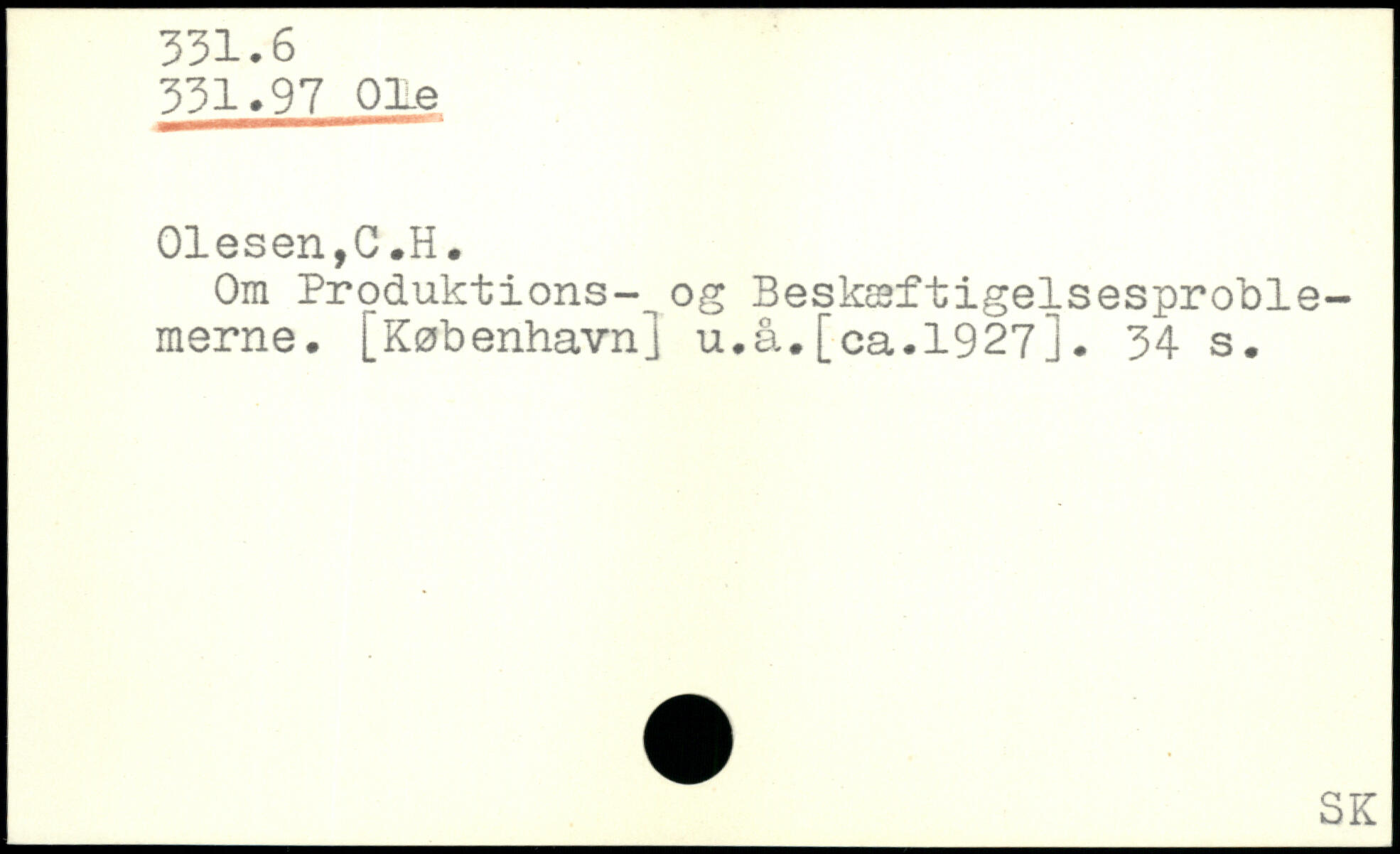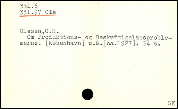 Om Produktions-^og Beskæftigelsesproblemerne. [København] u.å.[ca.1927j.