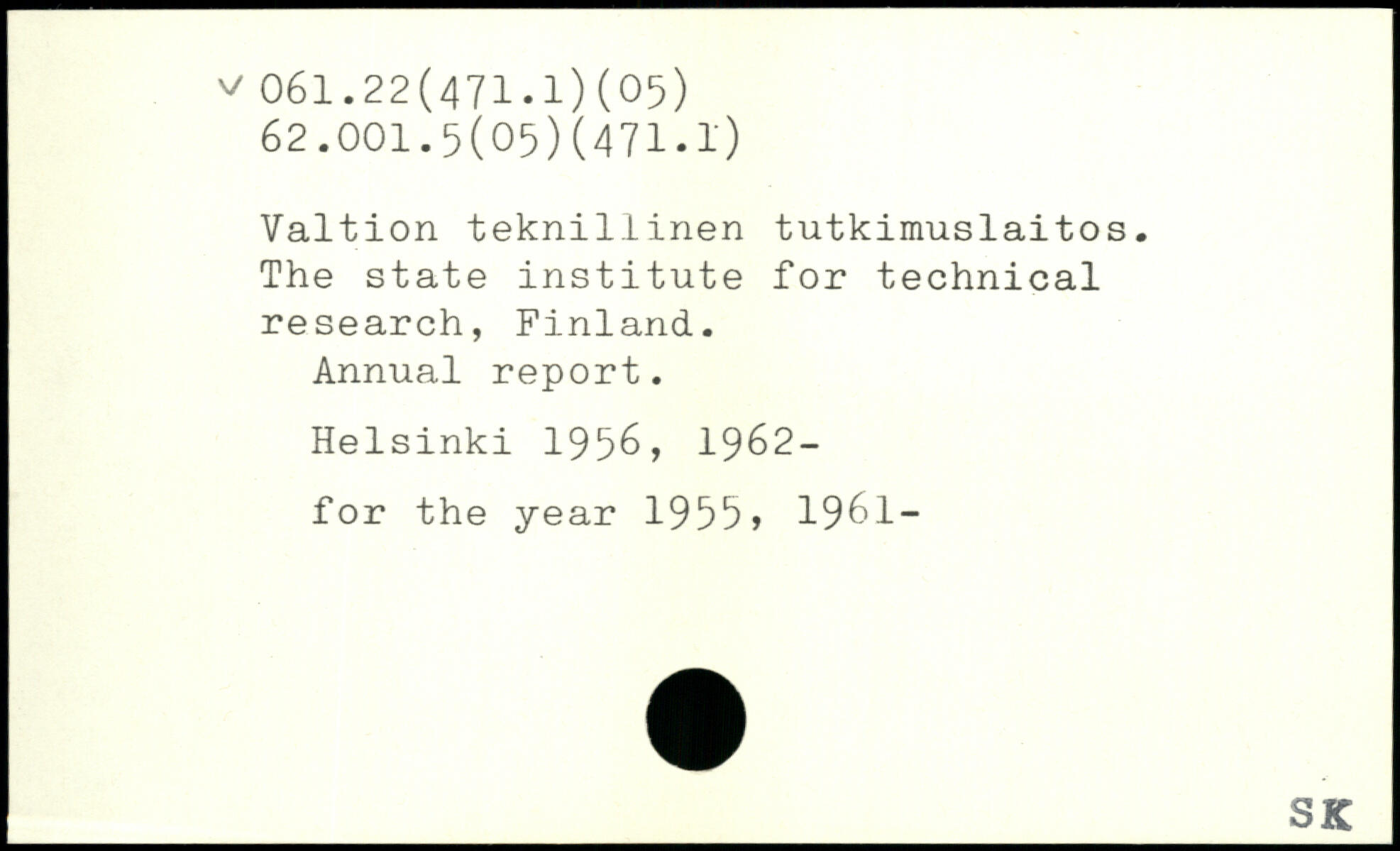 Valtion tekn1111nen tutkimuslaitos. The state institute for technical research, Finland. Annual report.
