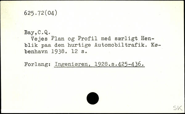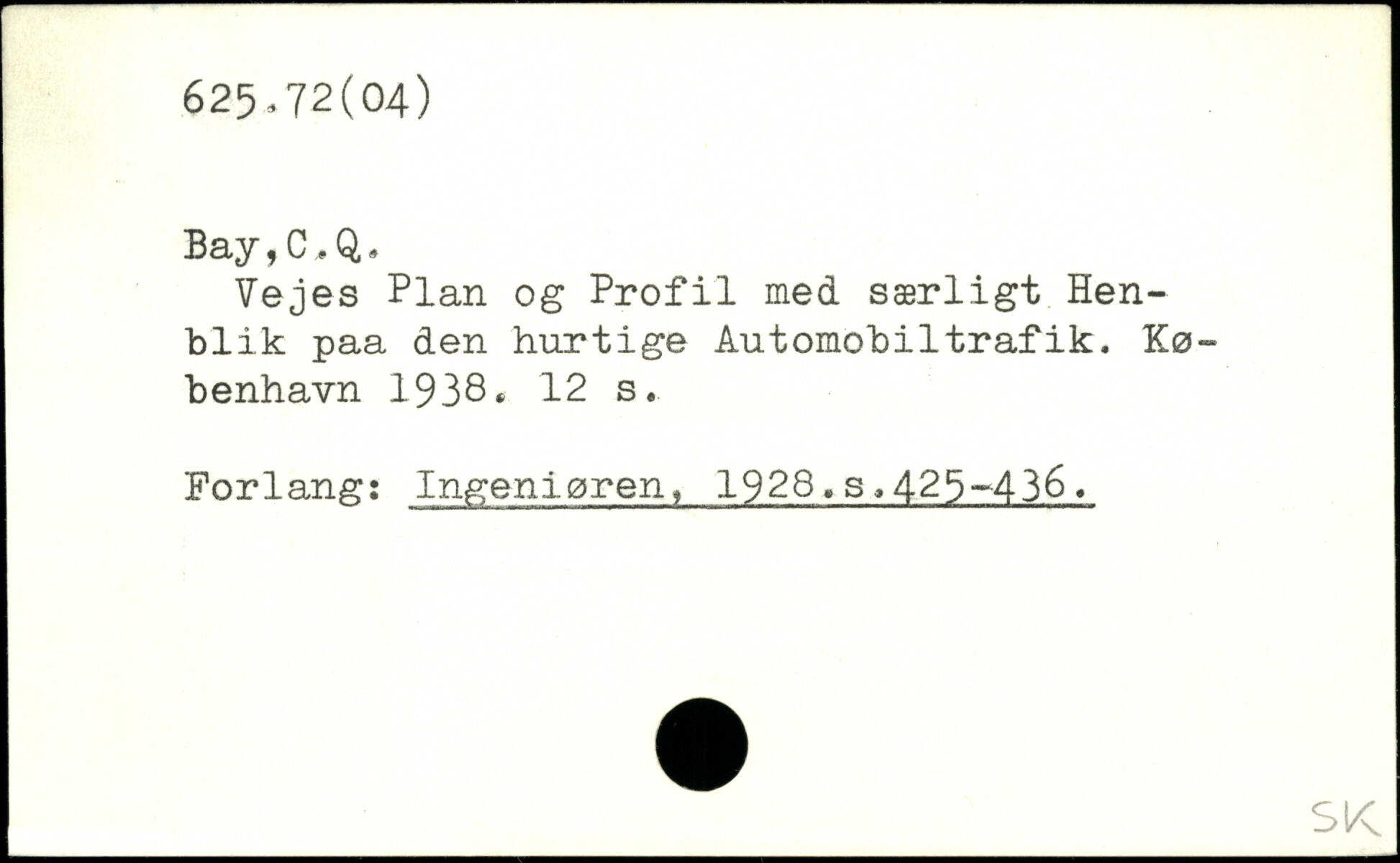 Vejes Plan og Profil med særligt Henblik paa den hurtige Automobiltrafik.