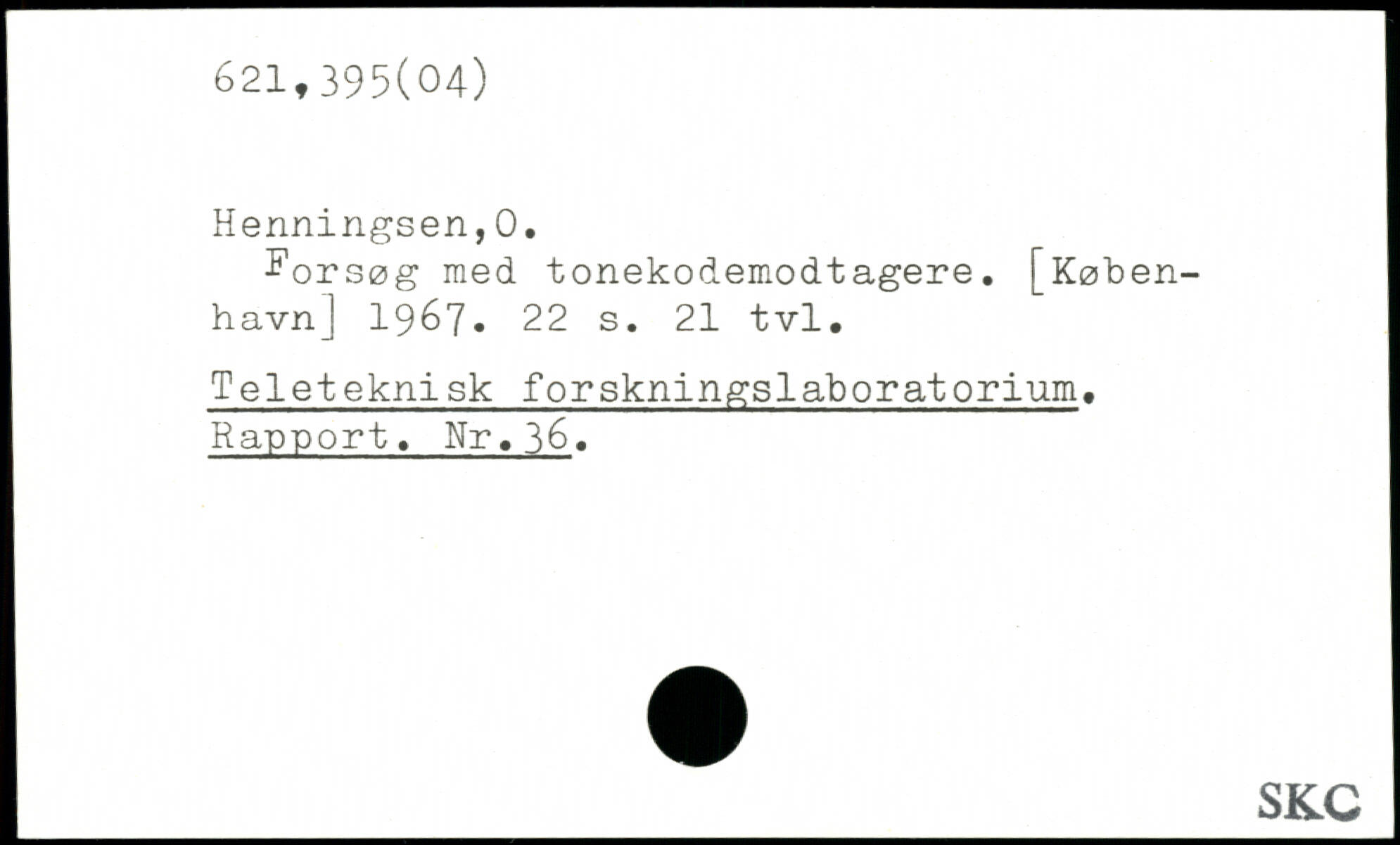 ^orsøg med. tonekodemodtagere. [København] 19é7.