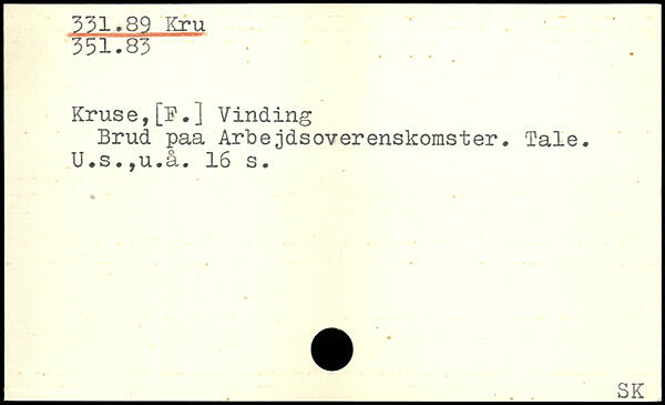 Krus e, [F. ] Vinding Brud paa Arbejdsoverenskomster. Tale. U.s.,u.å.