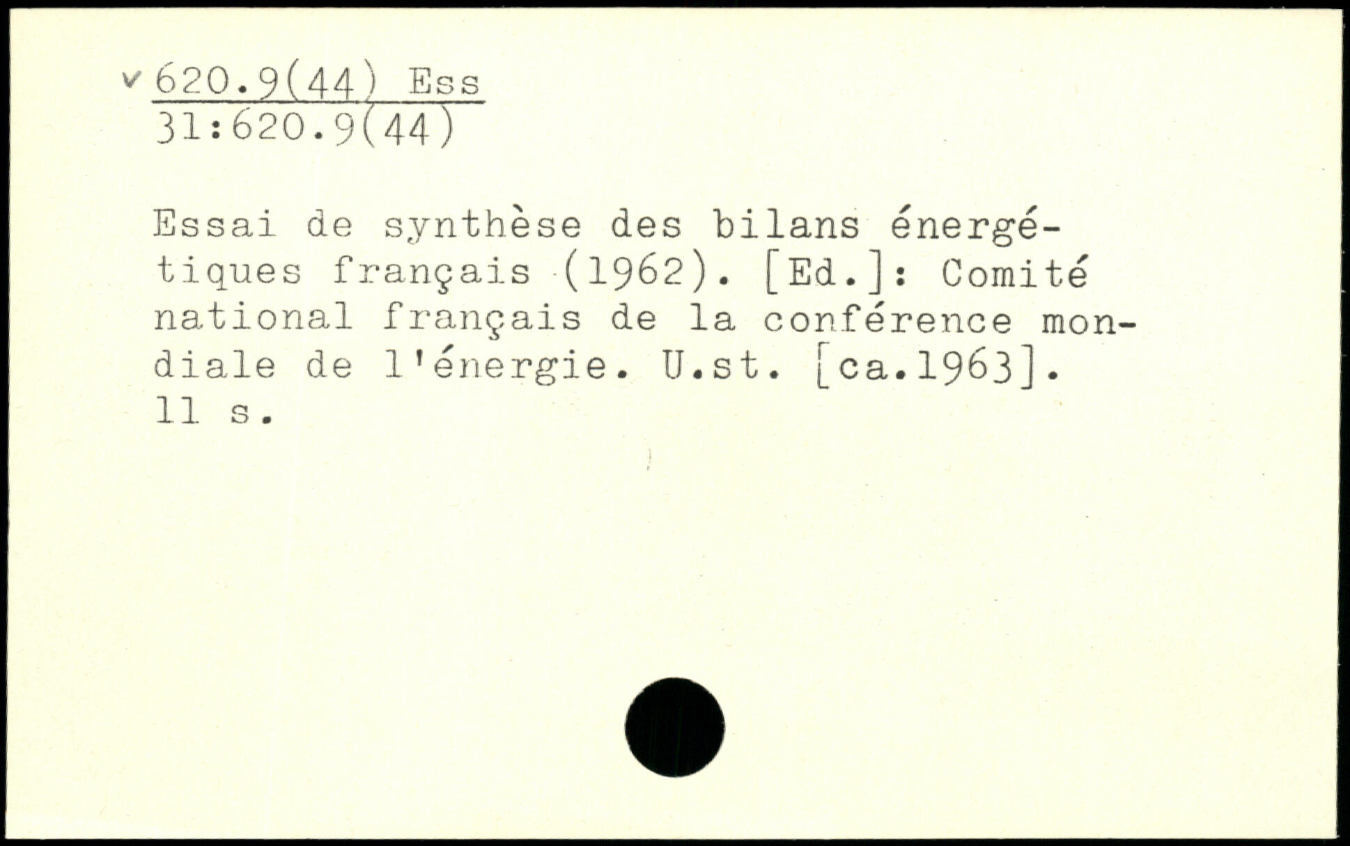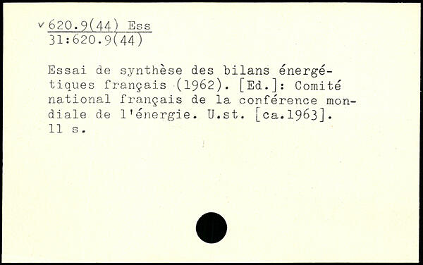 Essai de synthèse des bilans énergétiques français (1962). [Ed.]: Comité national français de la conférence mondiale de l’énergie. U.st. [ca.1963], i