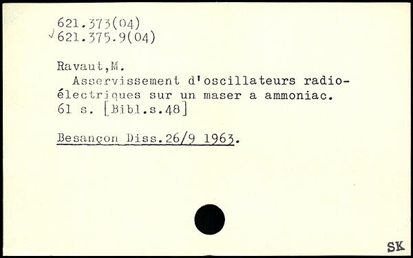 Asservissement d1oscillateurs radioélectriques sur un maser a ammoniac.