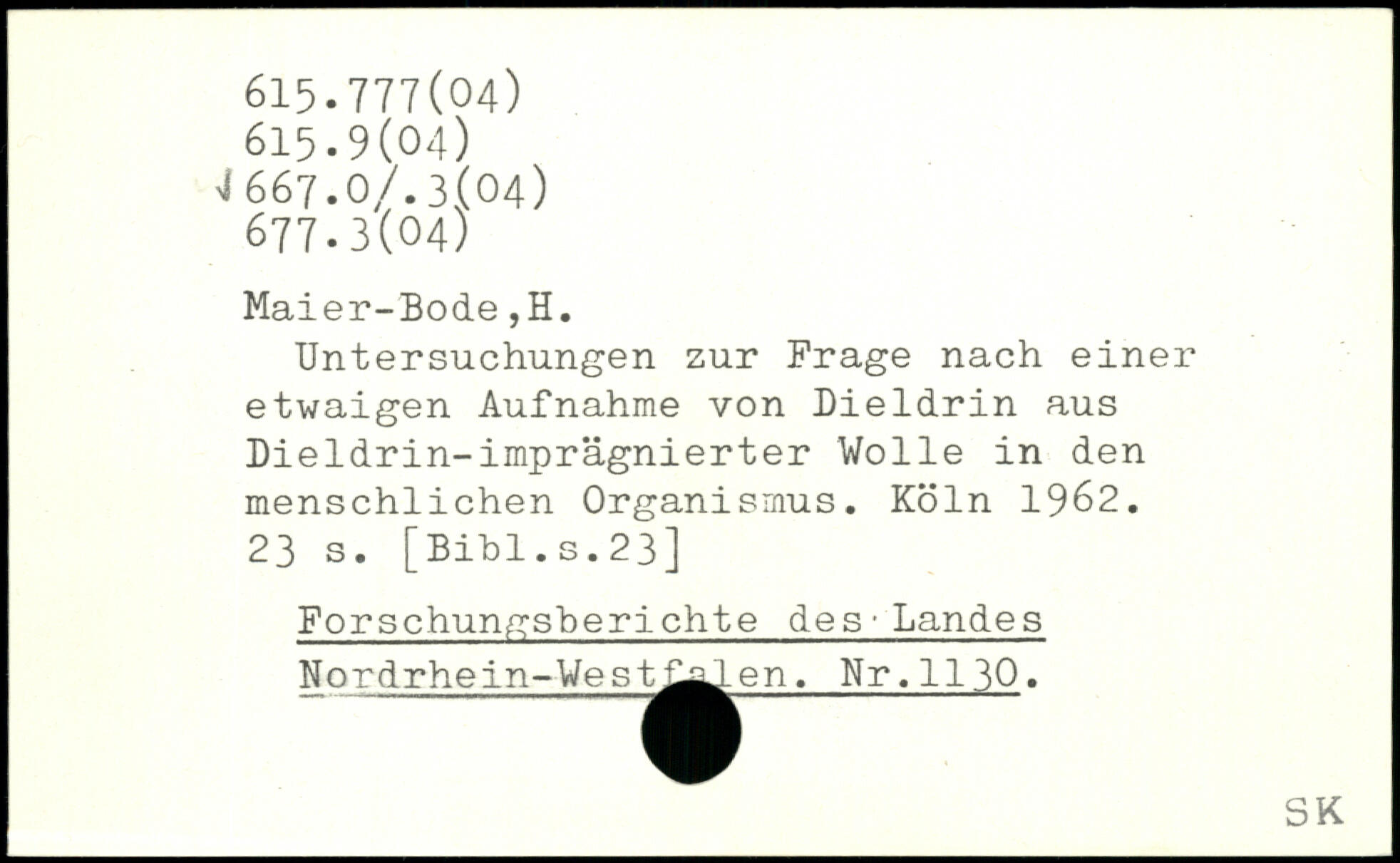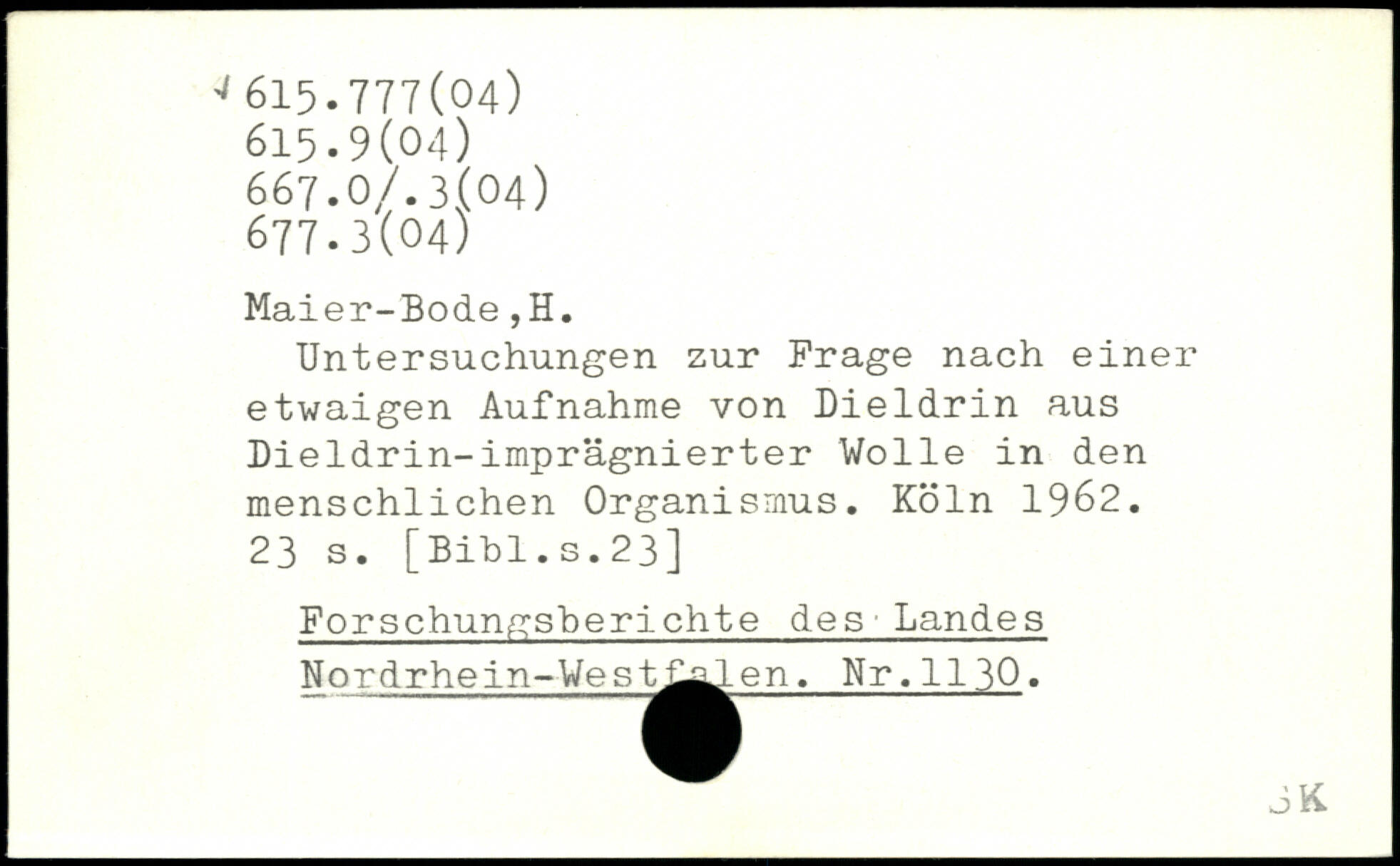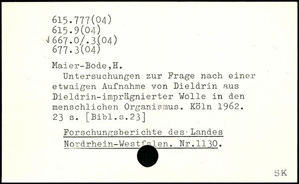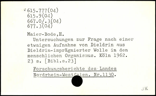 Untersuchungen zur Frage nach einer etwaigen Aufnahme von Meldrin aus Dieldrin-imprägnierter Wolle in den menschlichen Organismus.