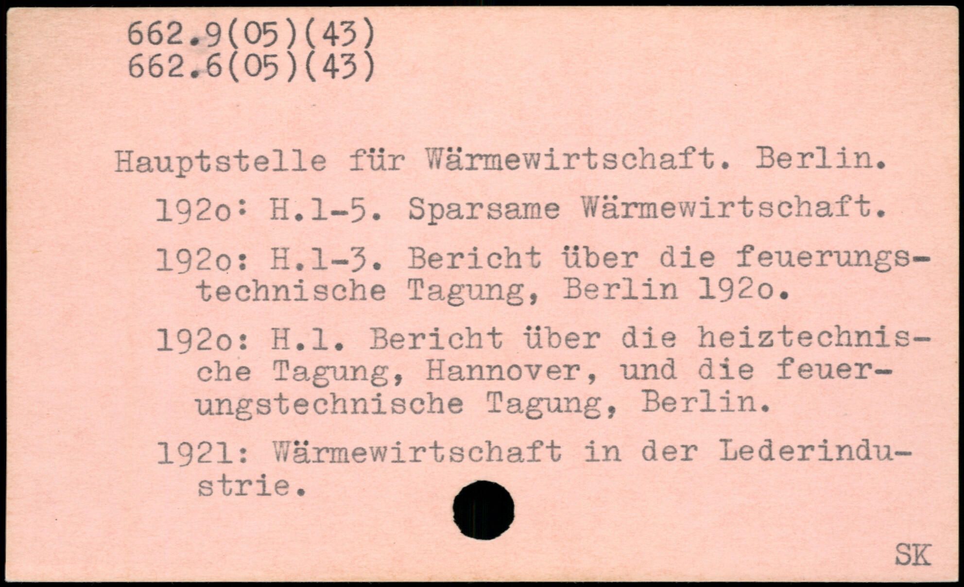 Hauptstelle für Wärmewirtschaft. Berlin. 192o: H.l-5. Sparsame Wärmewirtschaft. 192o: H.l-3. Bericht über die feuerungstechnische Tagung, Berlin 192o. 192o: H.l. Bericht über die heiztechnische Tagung, Hannover, und die feuerungstechnische Tagung, Berlin. 1921: Wärmewirtschaft in der Lederindustrie.