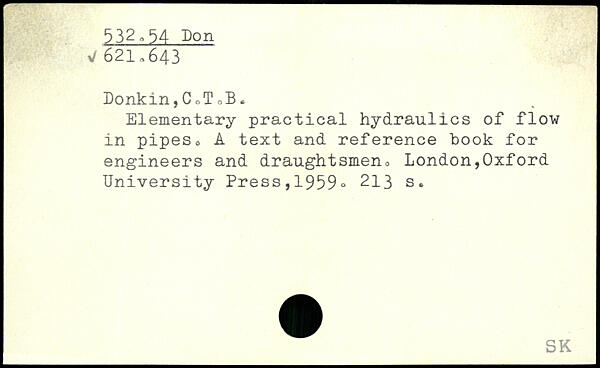 Elementary practical hydraulics of flow in pipeso A text and reference book for engineers and draughtsmen