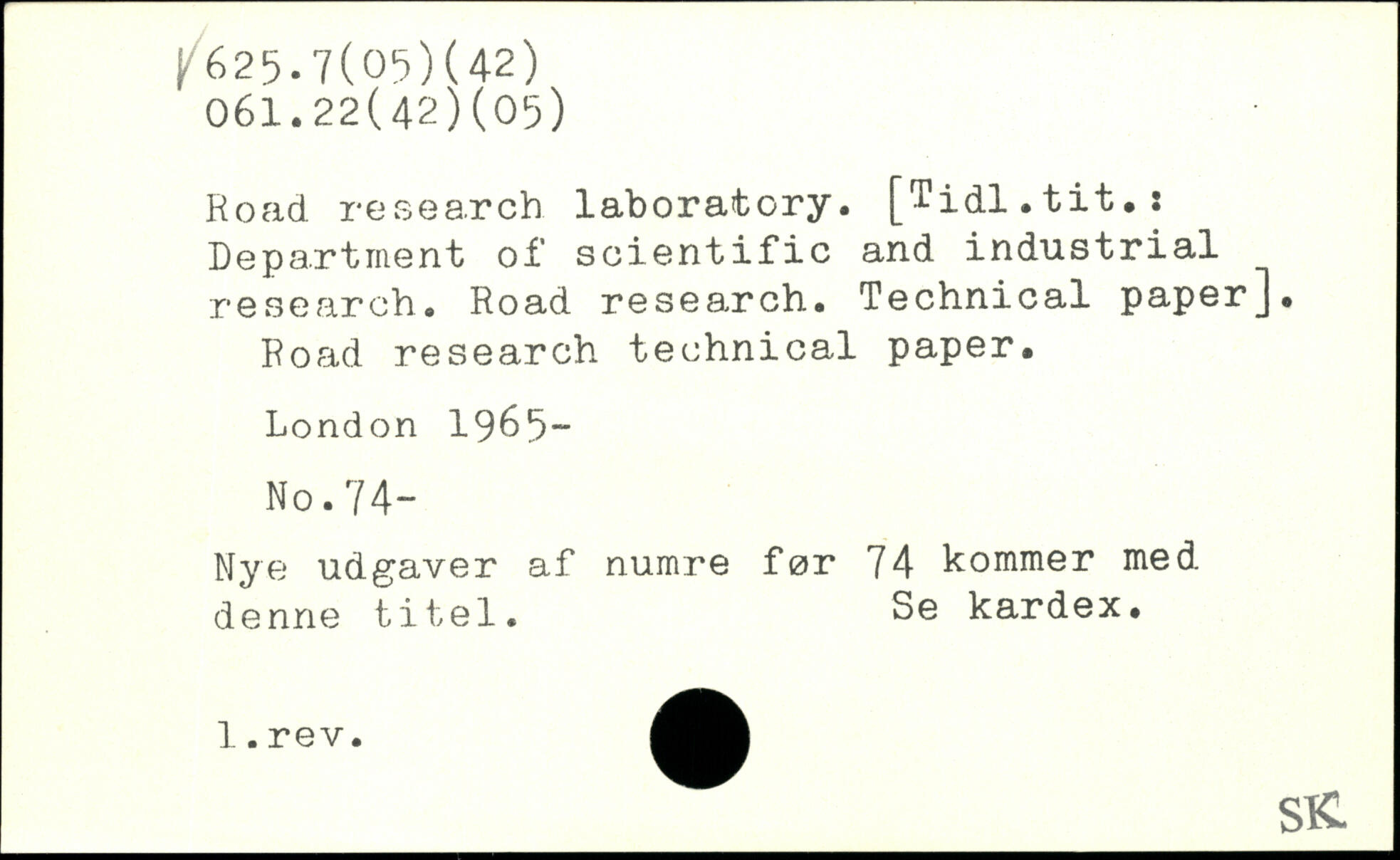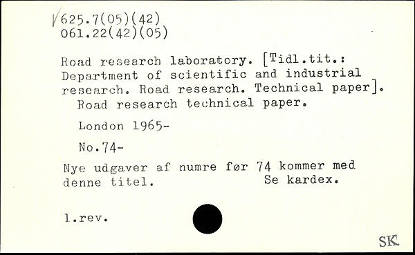 Road research laboratory. [Tidl.tit.: Department of scientific and industrial research. Road research. Technical paper]. Road research technical paper.