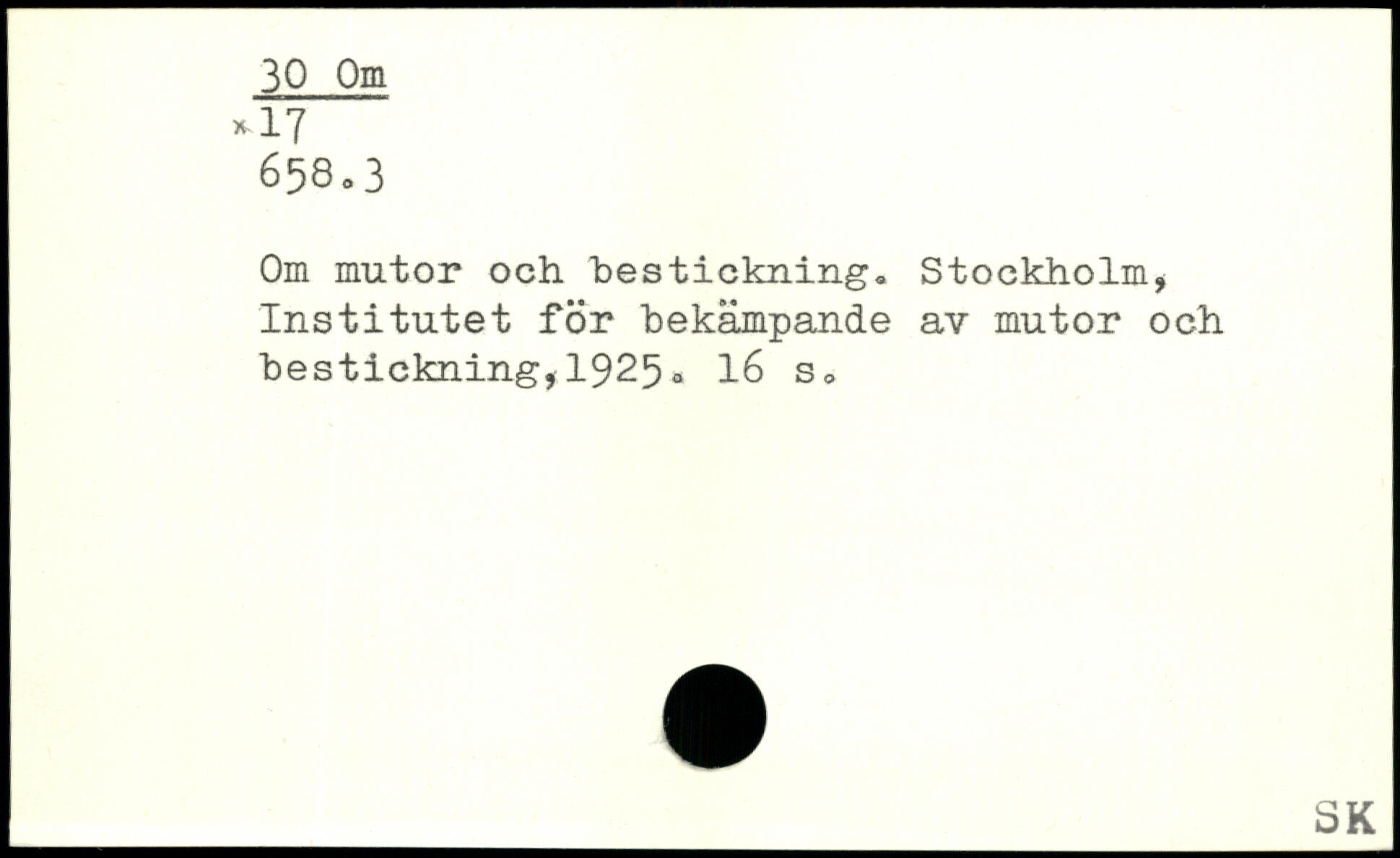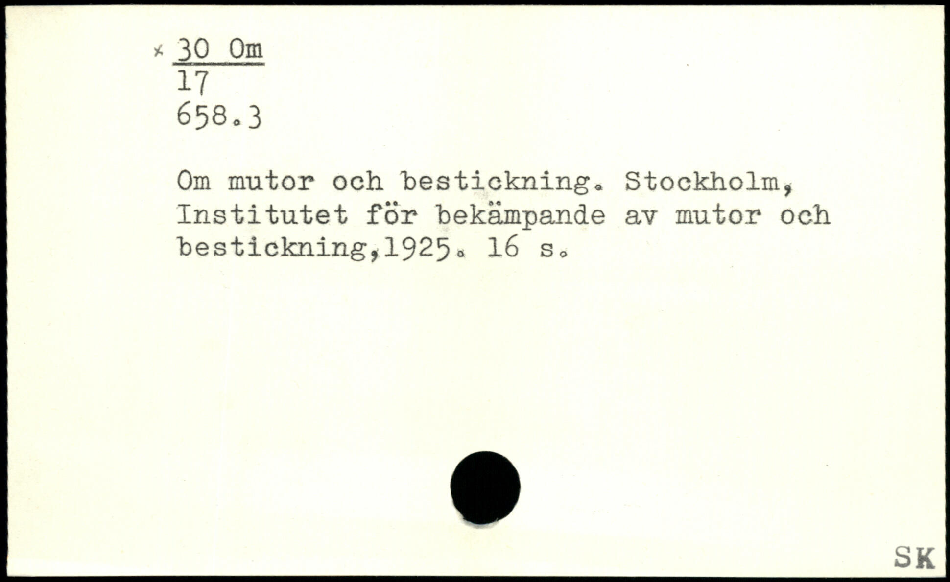 Om mutor och bestickning. Stockholm. Institutet för bekämpande av mutor och bestickning,1925-