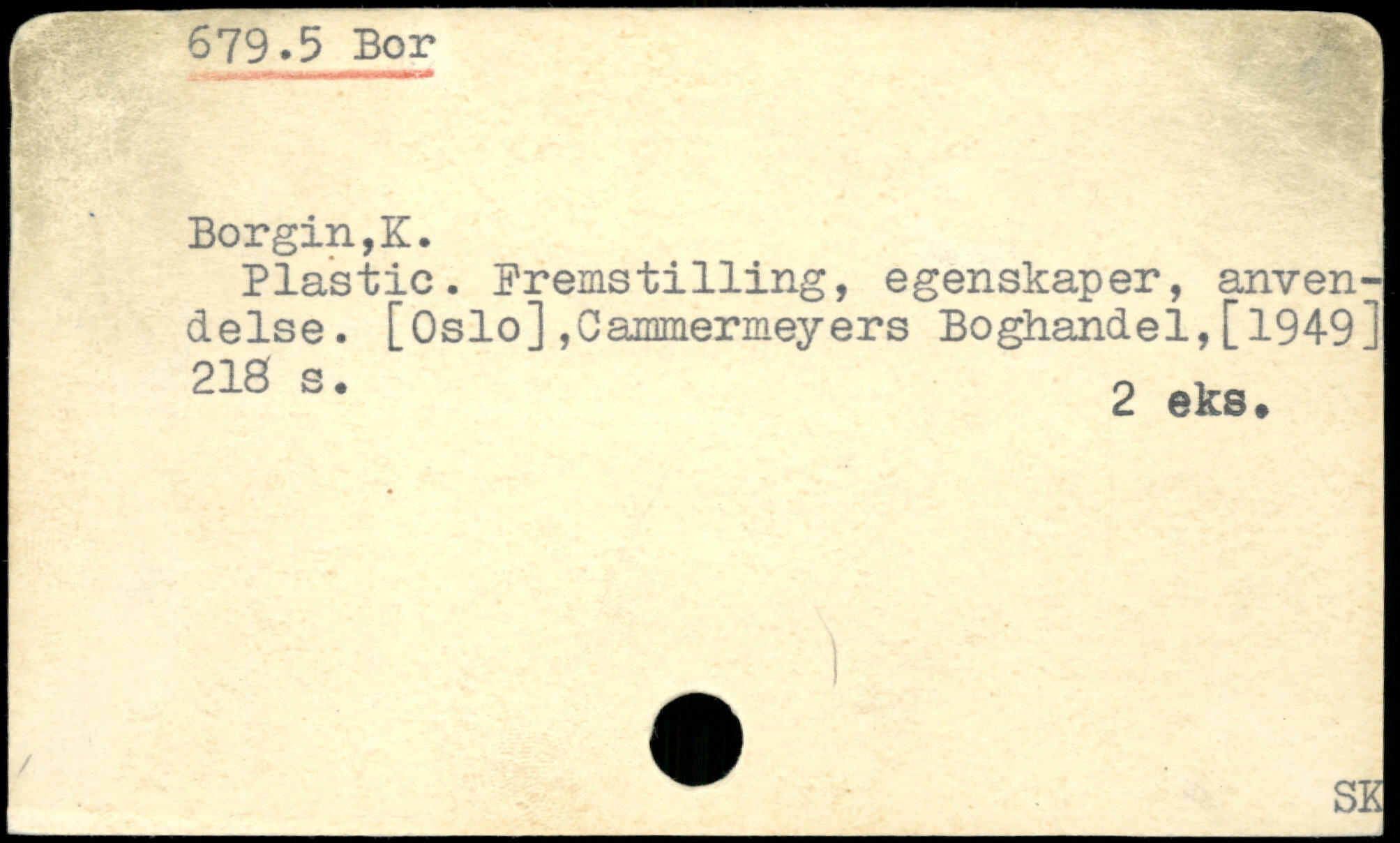 Plastic. Fremst1111ng, egenskaper, anvendelse. [Oslo],Cammermeyers Boghandel,[1949]