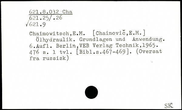 Chaimowitsch,E.M. [Chaimovic,E.M.] Ölhydraulik. Grundlagen und Anwendung.