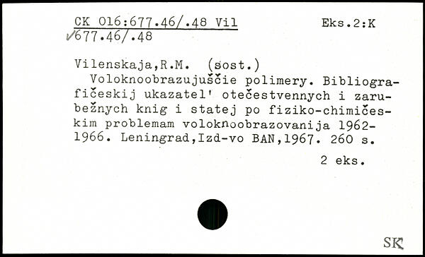 Voloknoobrazujuscie polimery. Bibliogra-ficeskij ukazatel' otecestvennych i zaru-beznych knig i statej po fiziko-chimices-kim problemam voloknoobrazovanija 1962-1966.