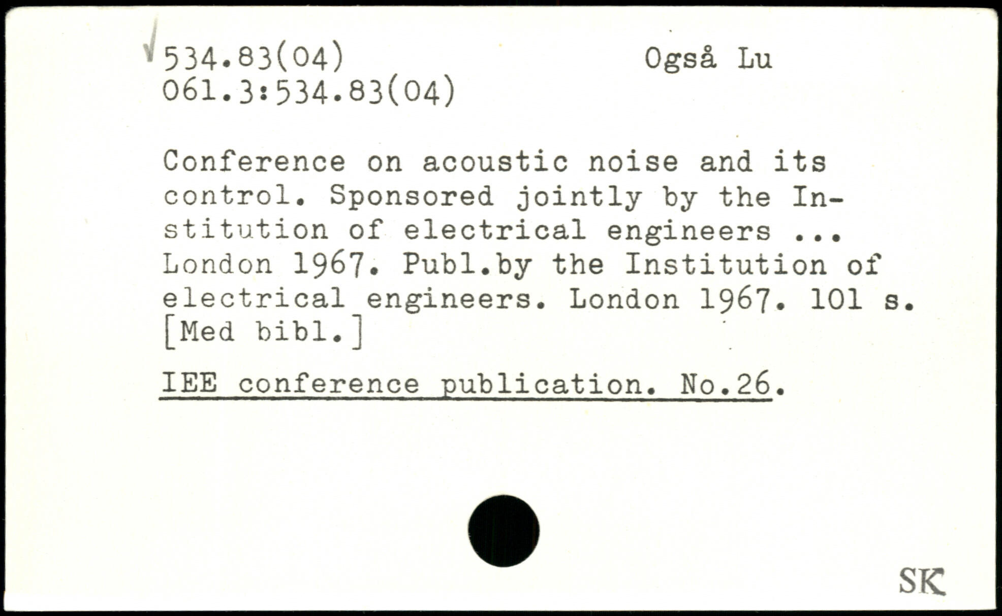 Conference on acoustic noise and its control. Sponsored jointly by the Institution of electrical engineers ...