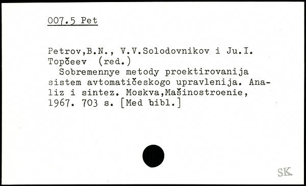 Petrov,B.N., V.V.Solodovnikov i Ju.I. Topceev (red.) Sobremennye metody proektirovanija sistem avtomaticeskogo upravlenija. Ana-liz i sintez.