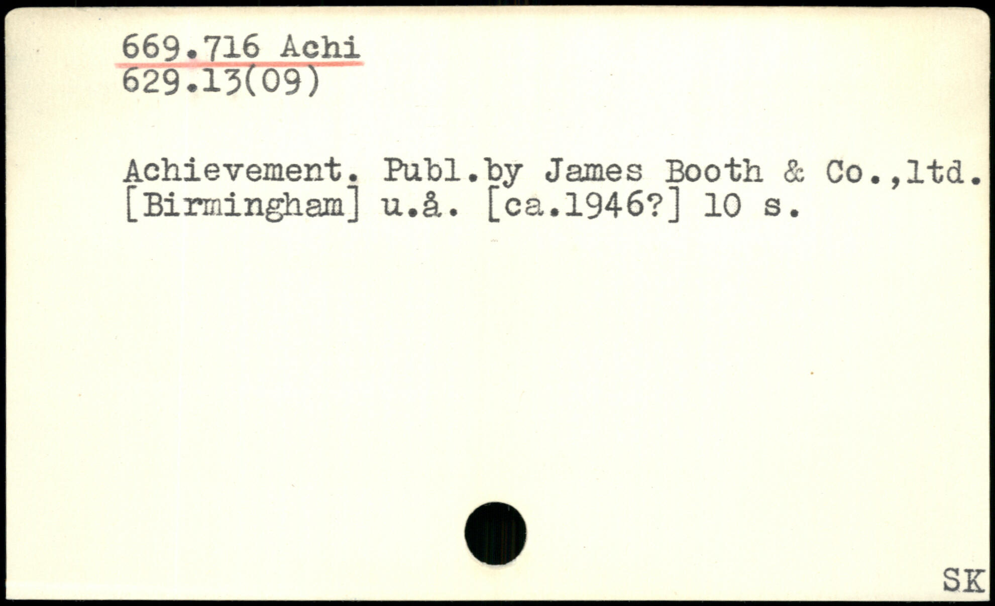 Achievement. Piibl.hy James Booth & Co.,ltd. [Birmingham] u.&. [ca.1946?]