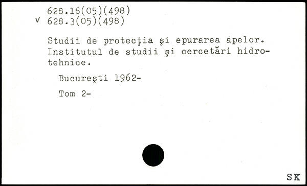 Studii de protec^ia §i epurarea apelor. Institutul de studii §i cercetari hidro-tehnice. Bucuregti 1962- Tom 2-