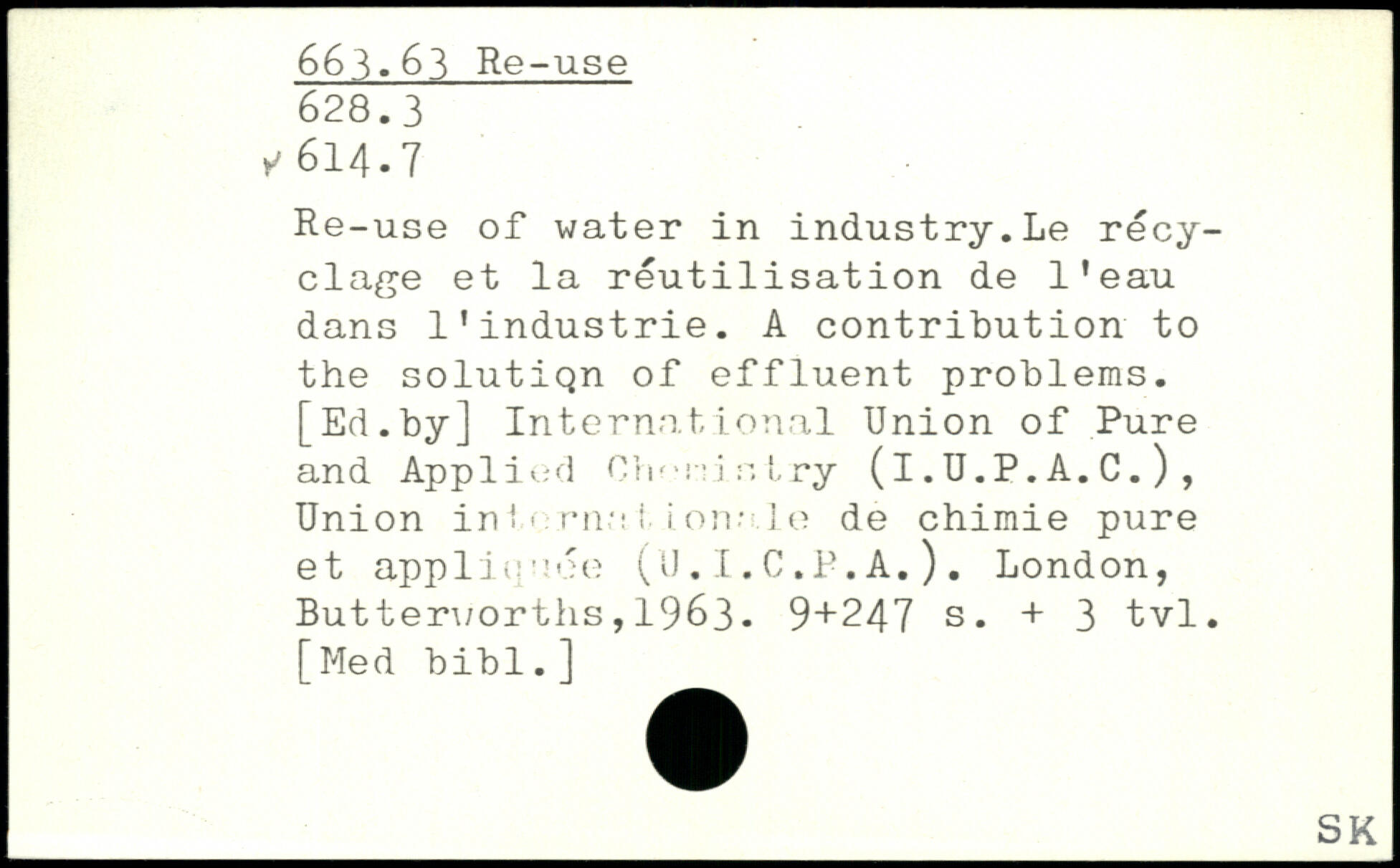 Re-use of water in industry.Le recyclage et la réutilisation de l'eau dans l'industrie. A contribution to the solutiqn of effluent problems.
