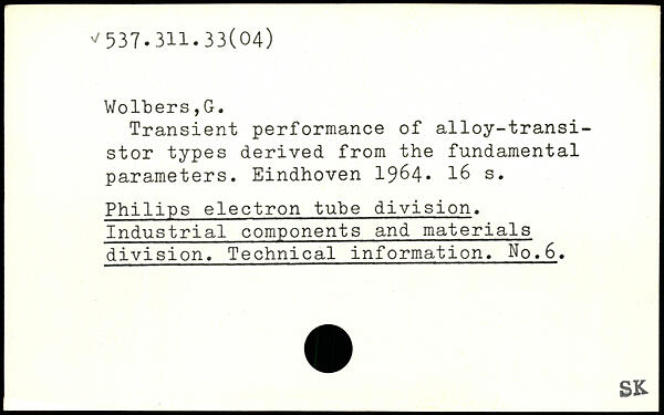 Transient performance of alloy-transistor types derived from the fundamental parameters. Eindhoven 1964.