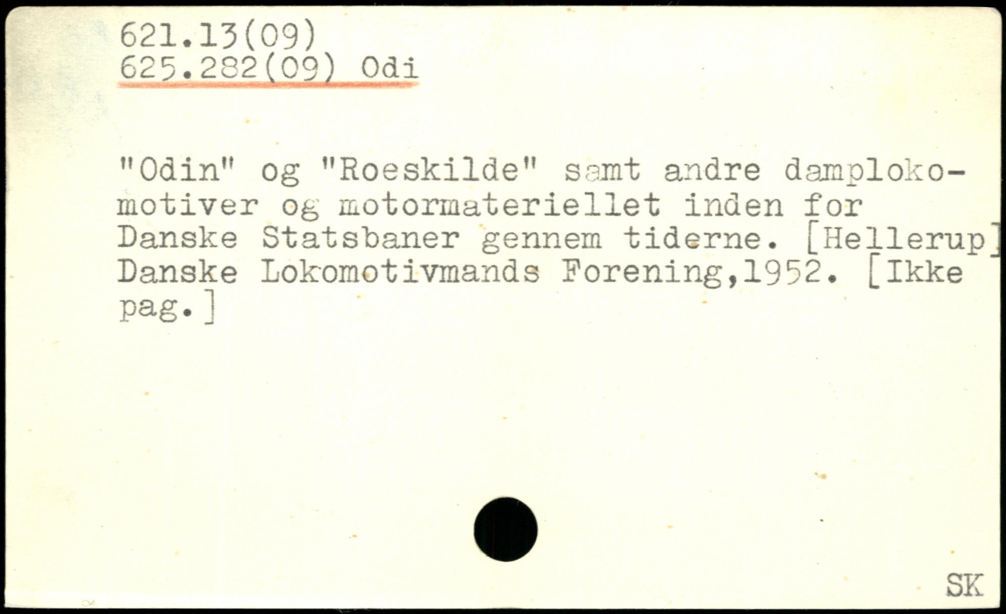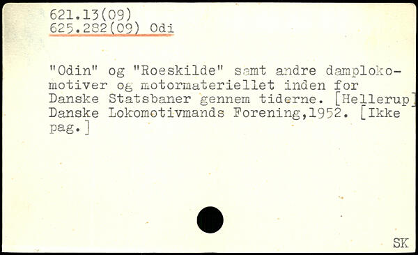 "Odin" og "Roeskilde" samt andre damplokomotiver og motormateriellet inden for Danske Statsbaner gennem tiderne. [Hellerup' Danske Lokomotivmands Forening,1952. [ikke pag. ]