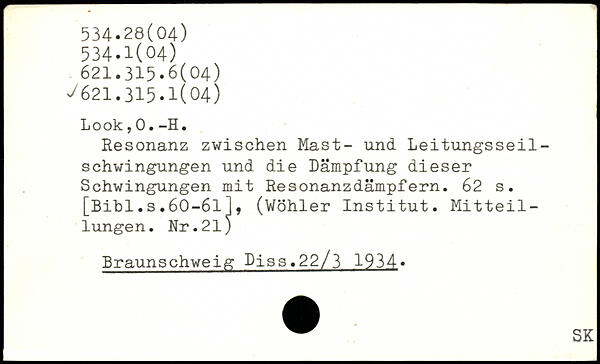 Resonanz zwischen Mast- und. Leitungsseilschwingungen und die Dämpfung dieser Schwingungen mit Resonanzdämpfern.
