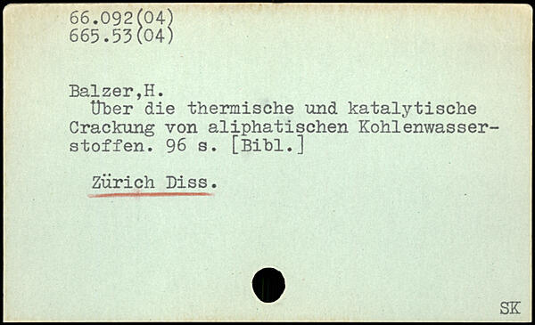 über die thermische und katalytische Crackung von aliphatischen Kohlenwasserstoffen.