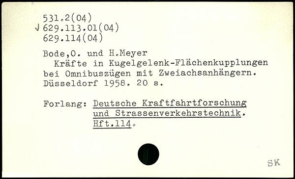 Kräfte in Kugelgelenk-Flächenkupplungen hei Omnibuszügen mit Zweiachsanhängern. Düsseldorf 1958