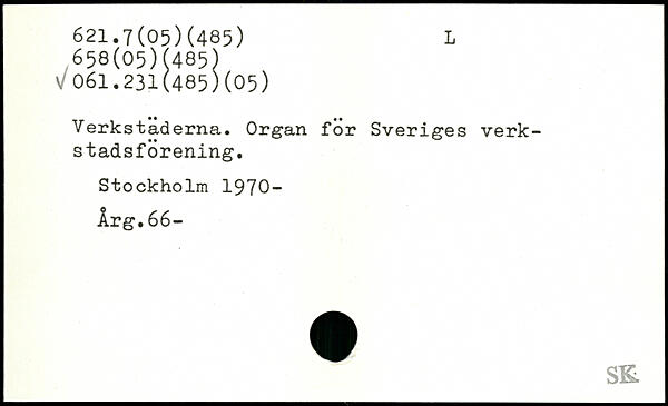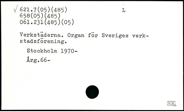 Verkstaderna. Organ for Sveriges verk-stadsförening.