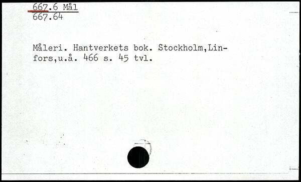 Måleri. Hantverkets bok. Stockholm,Linfors,u.å. å